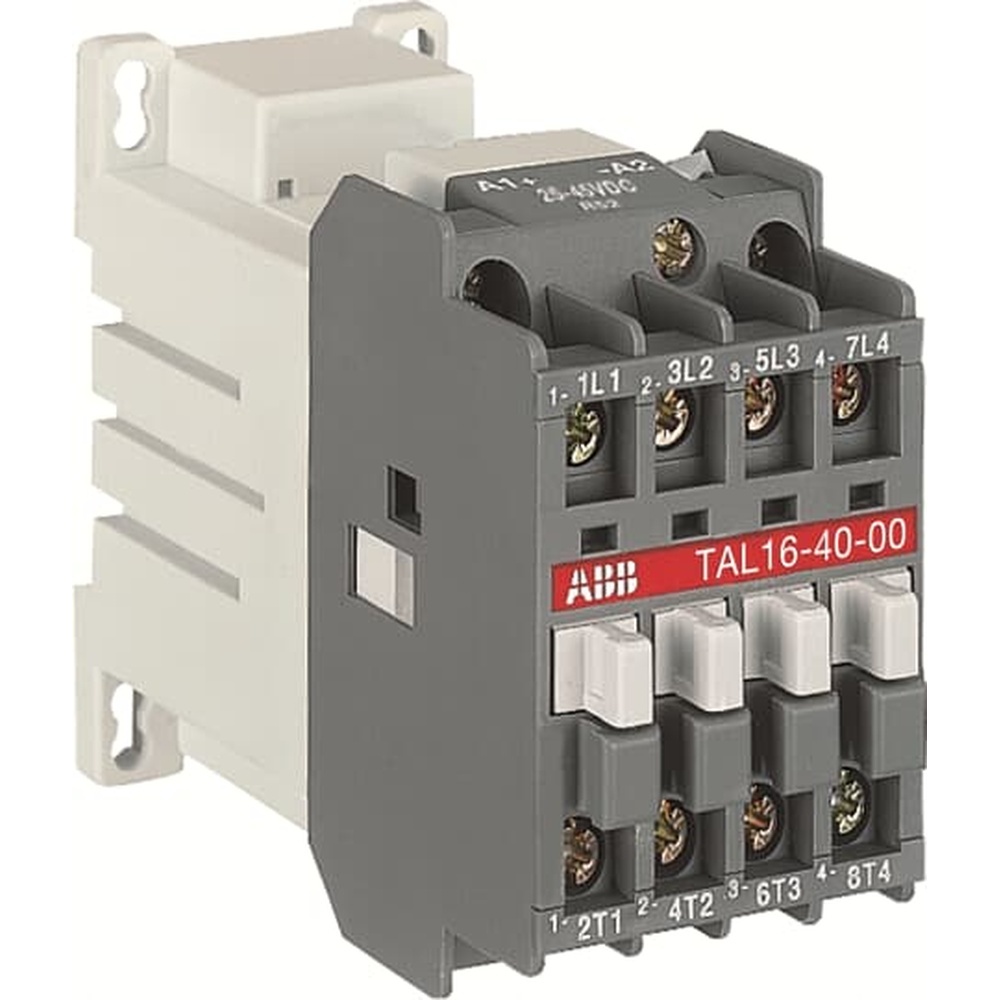 ABB Leistungsschütz Typ TAL16-22-00 17-32V DC TAL16-22-00-51 Schütz 17-32V DC Die 4-poligen TAL16 Schütze werden hauptsächlich zur Steuerung von leicht- oder nicht-induktiven Leistungskreisen bis 690V AC oder 220V DC eingesetzt. Die Schütze können auch für viele andere Anwendungen wie Isolierung, Kondensatorschaltung, Beleuchtung eingesetzt werden. Die 1-stöckigen, 4-poligen Schütze der Serie TAL... sind in Blockbauweise ausgeführt.- Hauptpole und Hilfskontaktblöcke: 4 Hauptpole (2S+2Ö), ohne eingebaute Hilfskontakte, die Installation von zusätzlichen vorderen oder seitlichen Anbau-Hilfskontaktblöcke ist möglich.- Steuerkreis: Gleichstrombetrieb mit Dauermagnetkreis. Die Polarität an den Spulenanschlüssen (A1+ und A2-) muss beachtet werden.TAL-Schütze besitzen eine Bahnzulassung Hersteller ABB Nr. 1SBL183561R5100 Typ TAL16-22-00 17-32V DC EAN Nr.3471522318510 Warengruppe ABB Schütze Relais