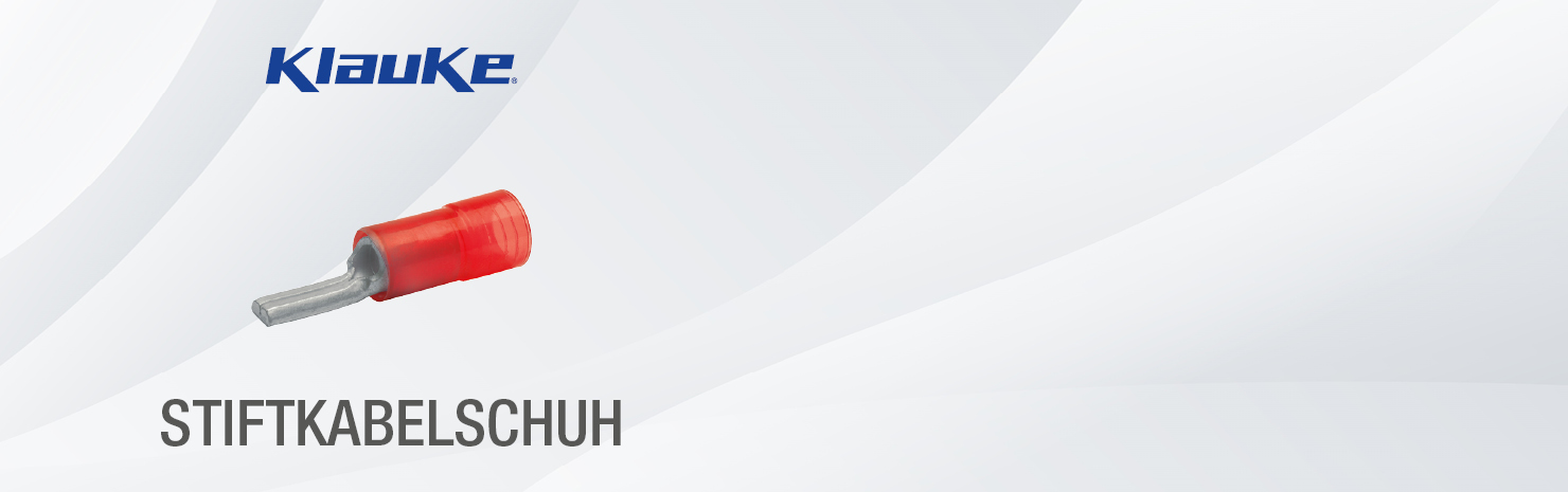 Die Klauke Stiftkabelschuhe eignen sich besonders für Leiter z.B. VDE 0295 Klasse 2. Für bessere Kontakteigenschaften sind die Stiftkabelschuhe mit einer speziell entwickelten Rillenprägung versehen. Standardmässig werden die Kabelschuhe galvanisch verzinnt angeboten, andere Oberflächen sind auf Anfrage möglich. Neben der einfachen Ausführung sind auch Klauke Stiftkabelschuhe mit einer aufgeweiteten Isolierhülse in verschiedenen Farben erhältlich.
