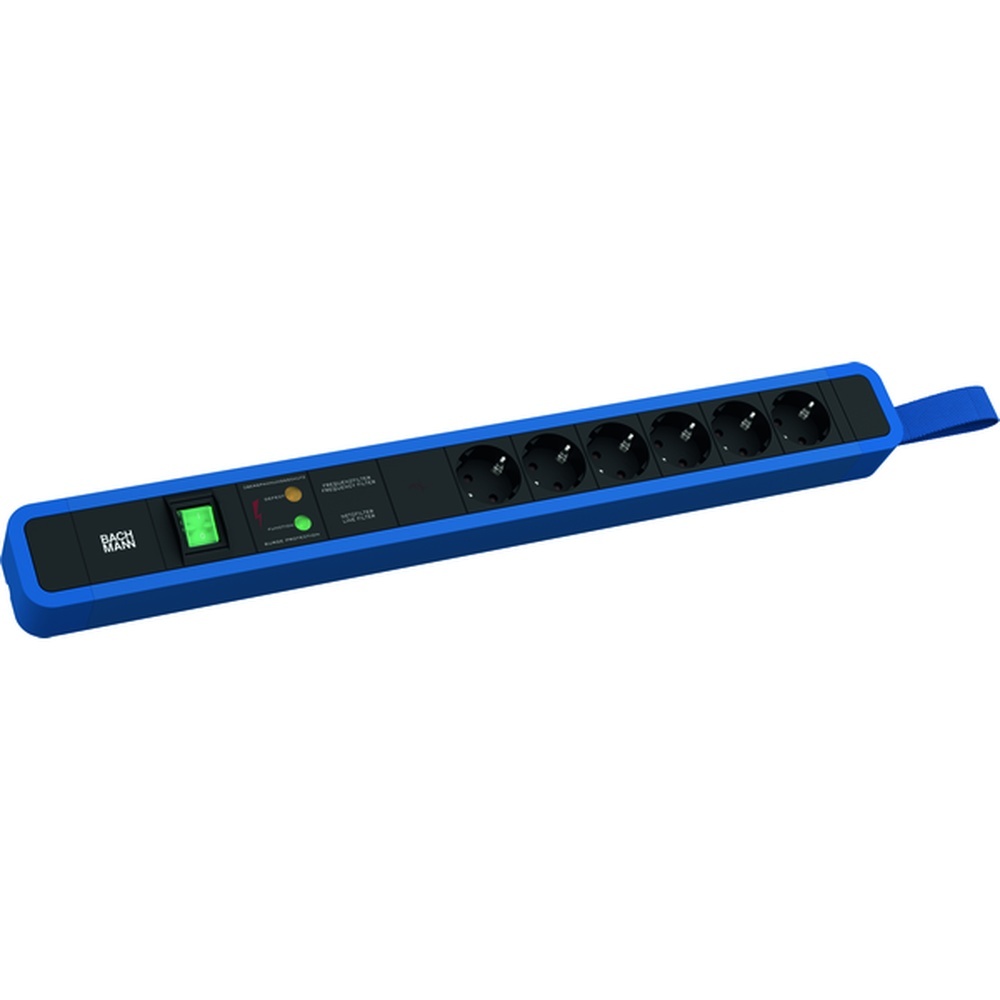 Bachmann Steckdosenleiste 350.313 PRIMO 2 Steckdosenleiste Aluminiumprofil lackiert in blau ähnlich RAL5010 1xSchalter grün 6xSchutzkontaktsteckdosen 35 Grad schwarz 1xGerätevollschutz Blaue Design-Endkappen mit Schlaufe zum Aufhängen Zuleitung: 2,0m H05VV-F 3G 1,5mm² schwarz mit Schutzkontakt-Winkelstecker mit BACHMANN Logo verpackt im Karton Hersteller Bachmann Nr. 350313 EAN Nr. 4057298125621 Warengruppe Bachmann Steckdosenleiste