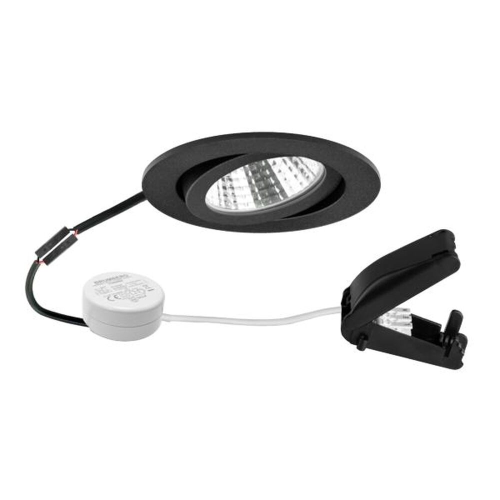 Brumberg LED Einbaustrahler 40463183 LED-Einbaustrahler 230 V AC, 50 Hz, 6 W, 38 Grad, 3.000 K, rund, schwenkbar, strukt LED-Einbaustrahlerset, Phasenabschnitt dimmbar (Rundkonverter), mit Anschlussbox, strukturschwarz, rund. Ausgeführt in kompakter Bauform für werkzeuglose Schnellmontage zum Deckeneinbau. Set inkl. Rundkonverter für 230 V-Netzspannung, Phasenabschnitt dimmbar, Maße Konverter: D 51xH 24 mm Montageart: Einbaumontage, Montageort: Deckenmontage, Material: Aluminium/Polycarbonat, Schutzart raumseitig: nach DIN EN 60529: IP20, Schutzklasse: (EN 61140) II, Spannung: 230V AC 50Hz, Leistung: 6 W, Anzahl der Leuchtmittel/Fassungen: 1 Stück, Lichtstrom: 630 lm, Farbtemperatur: 3.000 K, Abstrahlwinkel: 38 Grad, Verstellbarkeit: schwenkbar, Mit Betriebsgerät: Ja, Dimmbar: Ja, Art der Dimmung: Phasenabschnitt. Hersteller Brumberg Nr. 40463183 EAN Nr. 4251433996705 Warengruppe Brumberg Einbaustrahler