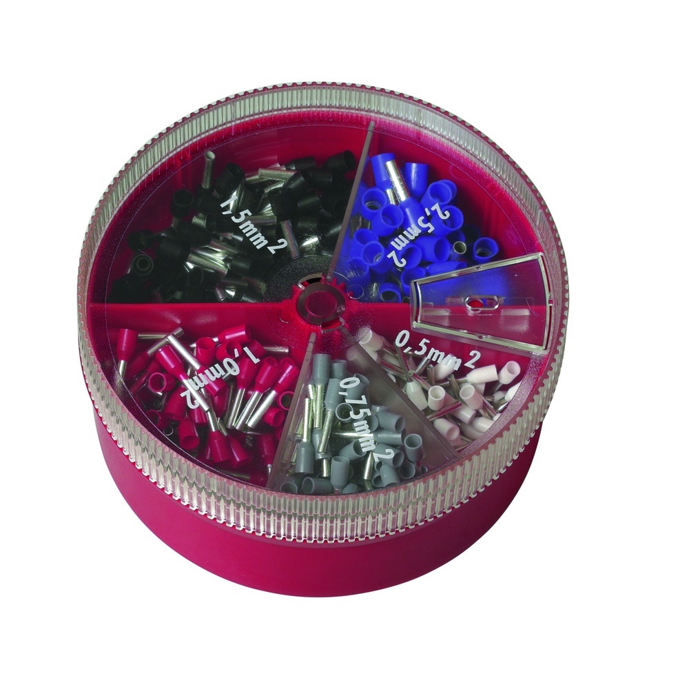 Cimco Aderendhülsen Streudose 187606 Aderendhülsen-Streudose, isoliert FR DIN Aderendhülsen-Streudose mit einfacher Querschnittszuordnung der Fächer. Isolierte Aderendhülsen nach DIN 46228-4, gefertigt aus hochwertigen Kupfer-DHP. Die Oberfläche ist galvanisch verzinnt mit einer Mindestschichtstäke von 3 µm für einen maximalen Korrosionsschutz. Der Kunststoffkragen aus Polypropylen sorgt für ein einfaches Einführen der Kupferleiter. Temperaturbeständig bis 105°C, für Leitungen Klasse 5 / 6 nach IEC 60228. Das Set beinhaltet Aderendhülsen in den Größen 4 mm², 6 mm², 10 mm² und 16 mm². Hersteller Cimco Nr. 187606 Warengruppe Cimco Aderendhülsen