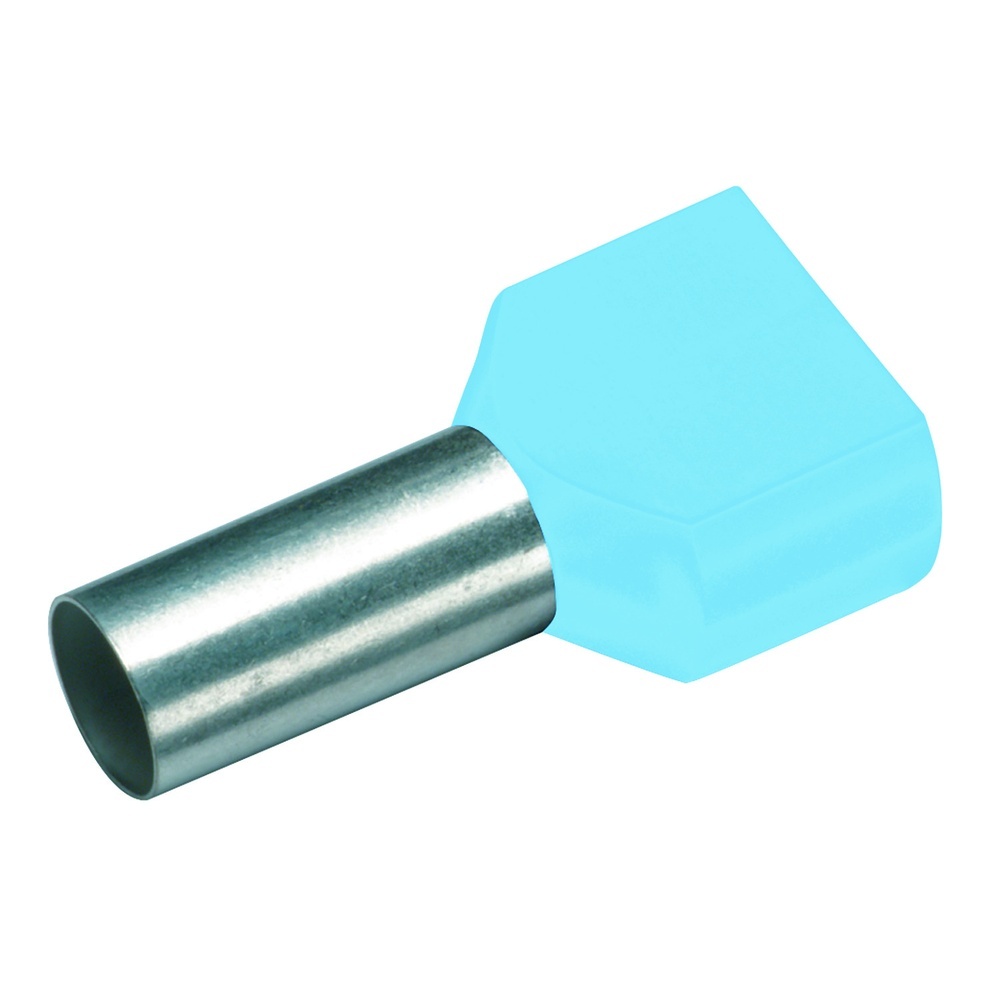 Cimco Zwillingsaderendhülse 187700 Zwillingsaderendhülse 2 x 0,25 mm² x 8 mm, hellblau Isolierte Zwillings-Aderendhülsen, gefertigt aus hochwertigen Kupfer-DHP. Die Oberfläche ist galvanisch verzinnt mit einer Mindestschichtstäke von 3 µm für einen maximalen Korrosionsschutz. Der Kunststoffkragen aus Polypropylen sorgt für ein einfaches Einführen der Kupferleiter. Temperaturbeständig bis 105°C, für Leitungen Klasse 5 / 6 nach IEC 60228 Hersteller Cimco Nr. 187700 Warengruppe Cimco Aderendhülsen