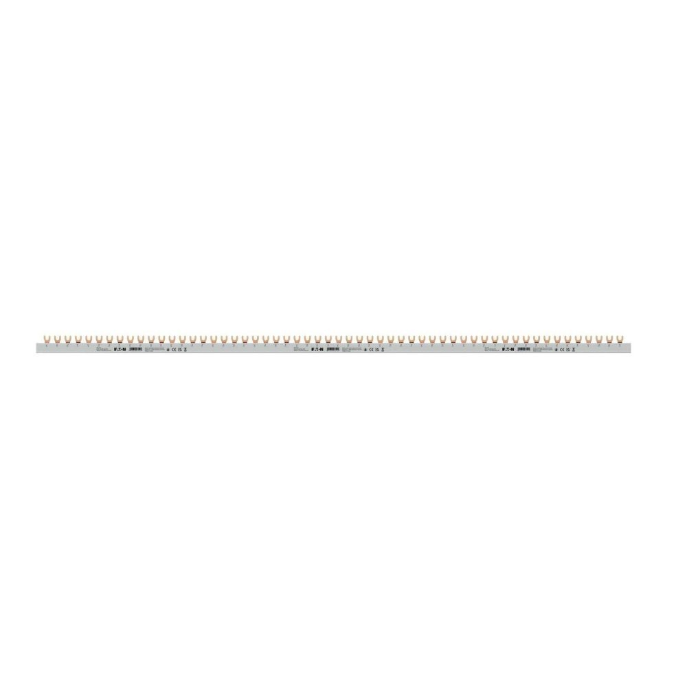 Eaton GVK Gabelverschienung EP-501071 Typ GVK-16/3P-3TE GVK Gabelverschienung, 3-phasig, L1-L2-L3, kürzbare Version, Endkappen nicht inklusive, 1 Meter, 16 mm² Sammelschiene für Leitungsschutzschalter, Fehlerstrom-Schutzschalter, kombinierte Fehlerstromschutzeinrichtungen, individuell ablängbar, Farbe RAL 7035, halogenfrei (DIN EN 60754-1), Brandverhaltensklasse nach V2, geprüft durch VDE (DIN EN 61439-1:2021-10, DIN EN 61439-6:2013-06) PC-ABS Isoliermaterial und PP Berührungsschutzmaterial, Durchschlagsfestigkeit 36 kV/mm und Überspannungskategorie III Hersteller Eaton Schaltgeräte EAN Nr. 9010653035152 Warengruppe Eaton Schienensystem