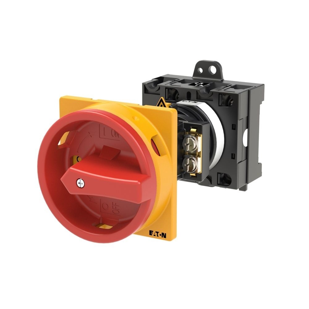 Eaton Hauptschalter 019120 Typ T3-1-102/V/SVB Hauptschalter, T3, 32 A, Zwischenbau, 1 Baueinheit(en), 2-polig, NOT-AUS-Funktion, roter Drehgriff, gelber Sperrkranz Hauptschalter, Sortiment: Hauptschalter, Wartungsschalter, Reparaturschalter, Typkenner: T3, Stopp-Funktion: NOT-AUS-Funktion, mit rotem Drehgriff und gelbem Sperrkranz, 2-polig, Verriegelungsvorrichtung: In der Position 0 (Aus) verriegelbar, Schutzart: Front IP65, Bauform: rückseitiger Einbau, Schaltwinkel: 90 °, Bemessungsbetriebsleistung AC-23A, 50 - 60 Hz 400 V: P = 15 kW, Bemessungsdauerstrom: Iu = 32 A, 1 Baueinheit(en), Normen und Bestimmungen: IEC/EN 60947, VDE 0660, IEC/EN 60204, CSA, UL, Lasttrennschalter nach IEC/EN 60947-3 Hersteller Eaton Nr. 019120 Typ T3-1-102/V/SVB EAN Nr. 4015080191209 Warengruppe Eaton Hauptschalter