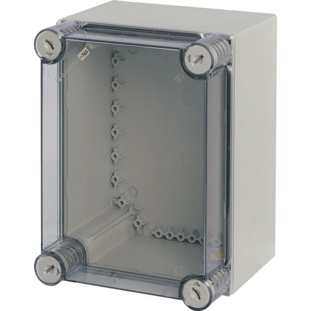 Eaton Montageblech Schirm 002212 Typ CI23X-150-NA Montageblech-Schirm, glatte Seiten, HxBxT=250x187,5x175mm, NA Typ Einzel-Basisgehäuse, Zulassung nach UL, Material: Polycarbonat, schlagfest, Schutzart IP65, optional abschließbar mit DVZ...-CI, patentierter Deckelverschluss mit integriertem Überdruckausgleich, glatte Seiten, ohne Vorprägungen, Befestigungsbänder zur Wandbefestigung, plombierbare Deckelverschlüsse, RAL 7035, Grau (Sockel), transparent rauchgrau, (Abdeckung), Einbautiefe bei Montageplatte=150mm, Abdeckungstyp: transparent rauchgrau, Ausführung Unterteil: glatt Hersteller Eaton Nr. 002212 Typ CI23X-150-NA EAN Nr. 4015080022121 Warengruppe Eaton Zubehör