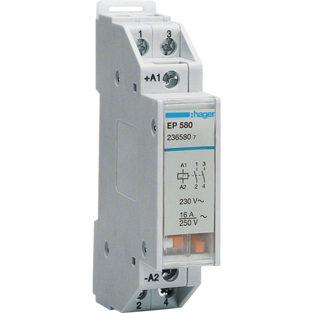 Hager Serienfernschalter EP580 Hager Installation Serienfernschalter 1 Schließer + 1 Schließer 230V AC 16A 1PLE. Serienfernschalter zur Impulssteuerung von zwei getrennten Lampengruppen ueber einen Taster. Gebaut nach DIN VDE 0637 Teil 1, Beruehrungsschutz nach DIN VDE 0106 Teil 100. Kontaktstellungsanze EAN Nr. 3250612365807 Hager Artikel Nr. EP580 Warengruppe Restposten