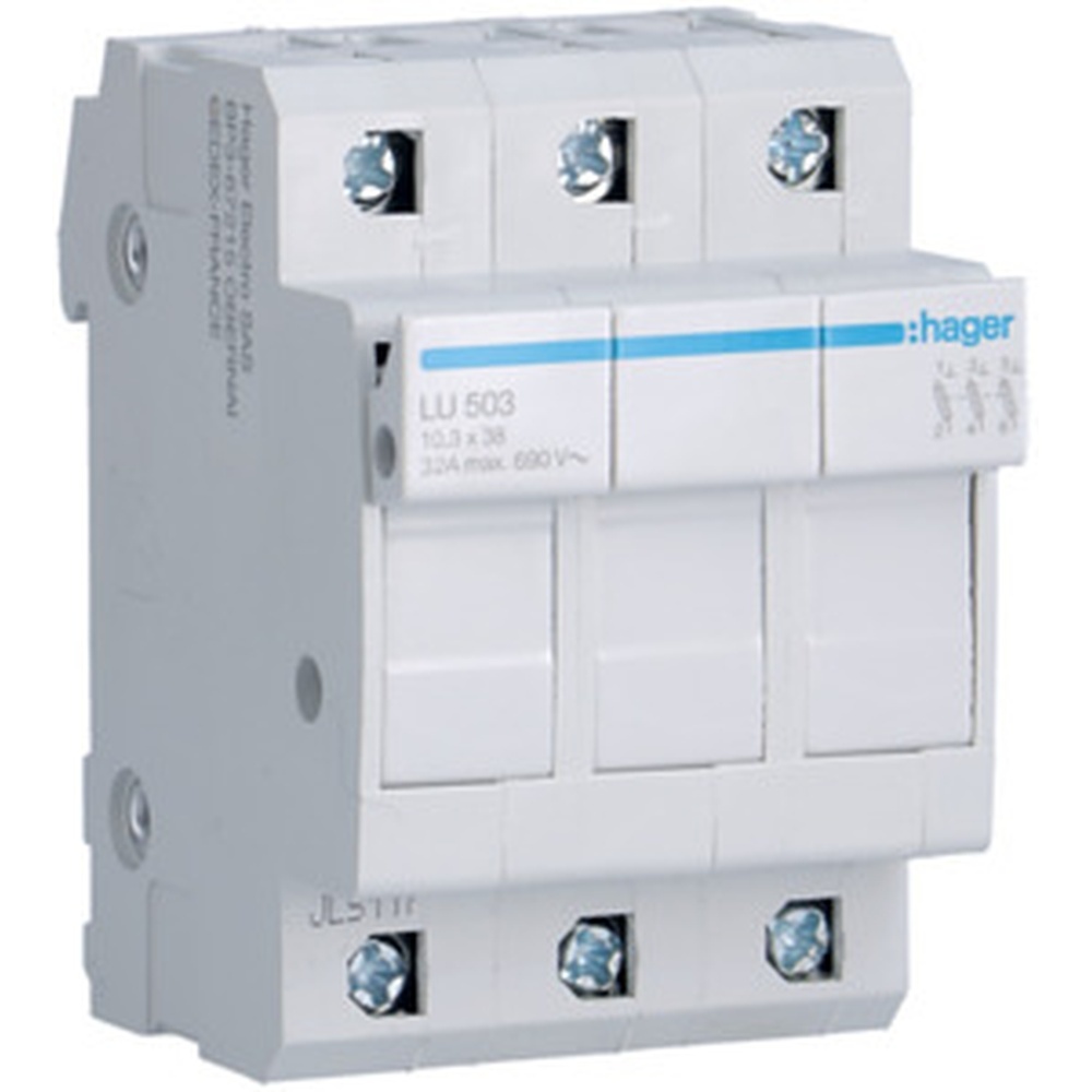 Hager Sicherungselement LU503 Sicherungselement 3P UL L38 3PLE Sicherungselement 3P UL 690V L38 3PLE Hersteller Hager Nr. LU503 EAN Nr. 3250614123900 Warengruppe Hager Sicherungseinsätze