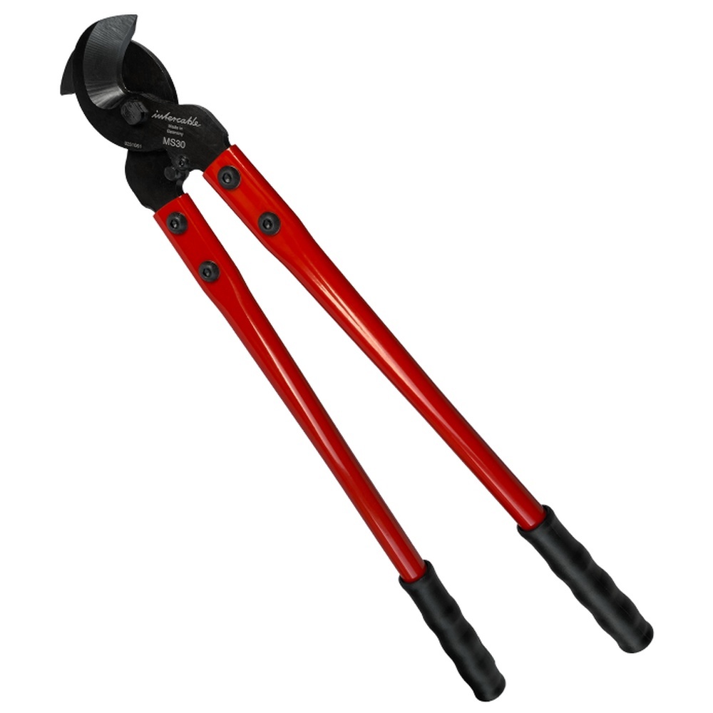 Intercable Kabelschere 182240 Typ MS50 Hebelübersetzte Zweihandkabelschere zum Schneiden von Al/Cu Kabel, Schneidbereich: 50 mm Ø, plangeschliffene Messer aus hochvergütetem Stahl, sichelförmige, abgerundete Schneiden für einen sicheren und exakten Schnitt, schlagfeste beschichtete, gehärtete Griffrohre Hersteller Intercable Tools Nr. 182240 Typ MS50 EAN Nr. 8014212293381