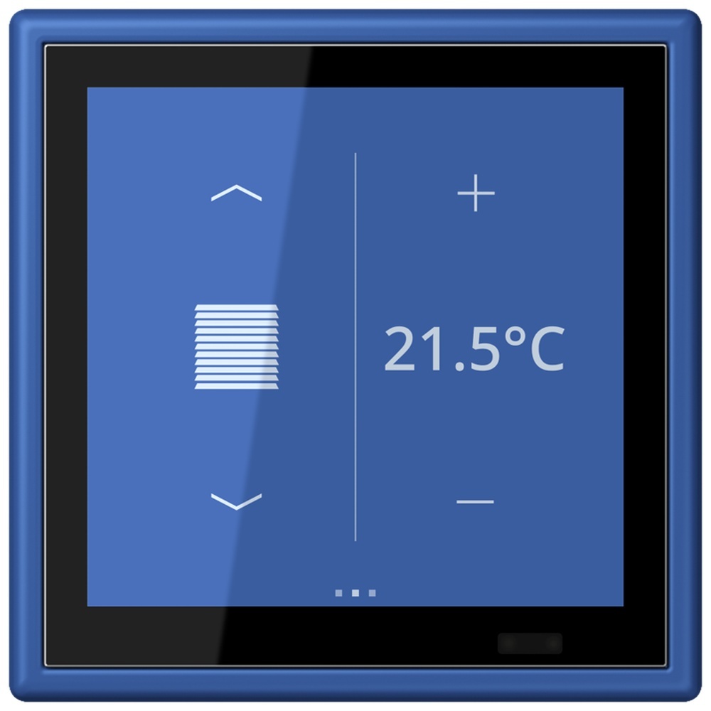 Jung KNX Raumcontroller LC459D1S253 KNX Raumcontroller LS TOUCH mit Rahmen LS 990, Serie LS, bleu outremer 59 (4320K) mit integriertem 1fach-Rahmen LS 990 Nur als Einzelgerät zu montieren! Bestimmungsgemäßer Gebrauch Bedienen von Verbrauchern und Visualisieren von Anlagenzuständen und Informationen, z.B. Licht schalten und dimmen, Behänge steuern, Temperatur- und Verbrauchswerte etc. Messen und Regeln der Raumtemperatur Montage in Gerätedose mit Abmessungen nach DIN 49073 Produkteigenschaften Hochauflösendes IPS Farbdisplay Kapazitiver Touchscreen Funktionen der Favoriten-Seiten einstellbar (ohne ETS) Max. 32 Bedienfunktionen Schalten, Dimmen, Jalousiesteuerung, Wertgeber, Szenenaufruf etc. Integrierter Raumtemperaturfühler Raumtemperaturregelung mit Sollwertvorgabe Alarmfunktion (akustisch und/oder optisch) Max. 8 Zeitschaltfunktionen aktivierbar und einstellbar (abhängig von Uhrzeit, Astro oder Zufall) Integrierter Näherungs- und Helligkeitssensor Integrierter Busankoppler Anschluss von Installationstastern oder Reedkontakten möglich Inbetriebnahme und Unterstützung von KNX Data Secure mit ETS ab Version 5.7.4 Anzeige von Raum- und Soll-Temperatur Fernfühler (Art.-Nr.: FF NTC) anschließbar Anzeige der Außentemperatur – mit externem Sensor, z.B. Wetterstation In Verbindung mit JUNG Smart Visu Server: Steuerung von Musikwiedergabe und Lautstärkeregelung Hersteller Jung EAN Nr. 4011377210615 Warengruppe Jung Les Couleurs Le Corbusier