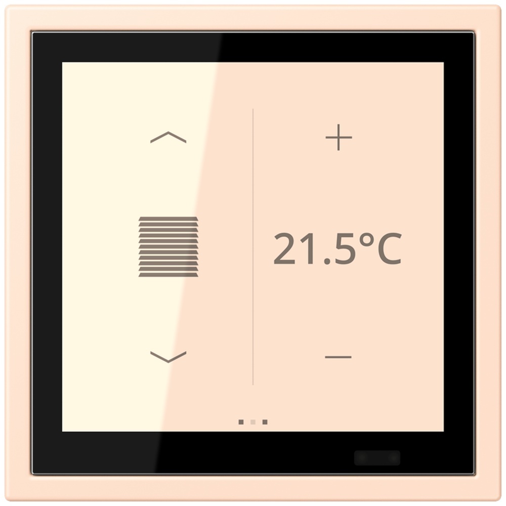 Jung KNX Raumcontroller LCZ459BFD1S228 KNX Raumcontroller LS TOUCH mit Rahmen LS ZERO, Serie LS, rose pâle (32091) mit integriertem 1fach-Rahmen LS ZERO inklusive Saugheber (Art.-Nr.: W-HEBER) zur Demontage des Gerätes vom Tragring Nur als Einzelgerät zu montieren! Bestimmungsgemäßer Gebrauch Bedienen von Verbrauchern und Visualisieren von Anlagenzuständen und Informationen, z.B. Licht schalten und dimmen, Behänge steuern, Temperatur- und Verbrauchswerte etc. Messen und Regeln der Raumtemperatur Montage in Gerätedose mit Abmessungen nach DIN 49073 Produkteigenschaften Hochauflösendes IPS Farbdisplay Kapazitiver Touchscreen Funktionen der Favoriten-Seiten einstellbar (ohne ETS) Max. 32 Bedienfunktionen Schalten, Dimmen, Jalousiesteuerung, Wertgeber, Szenenaufruf etc. Integrierter Raumtemperaturfühler Raumtemperaturregelung mit Sollwertvorgabe Alarmfunktion (akustisch und/oder optisch) Max. 8 Zeitschaltfunktionen aktivierbar und einstellbar (abhängig von Uhrzeit, Astro oder Zufall) Integrierter Näherungs- und Helligkeitssensor Integrierter Busankoppler Anschluss von Installationstastern oder Reedkontakten möglich Inbetriebnahme und Unterstützung von KNX Data Secure mit ETS ab Version 5.7.4 Anzeige von Raum- und Soll-Temperatur Fernfühler (Art.-Nr.: FF NTC) anschließbar Anzeige der Außentemperatur – mit externem Sensor, z.B. Wetterstation In Verbindung mit JUNG Smart Visu Server: Steuerung von Musikwiedergabe und Lautstärkeregelung Hersteller Jung EAN Nr. 4011377211032 Warengruppe Jung Les Couleurs Le Corbusier