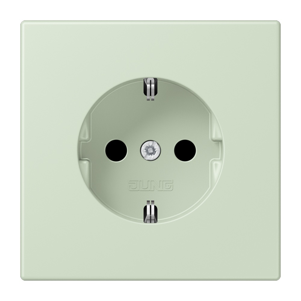 Jung SCHUKO Steckdose LC1520KI218 SCHUKO Steckdose, 16 A 250 V, SAFETY+, Duroplast lackiert, Serie LS, vert anglais pâle (32042) SCHUKO -Steckdose, vert anglâis pale mit integriertem erhöhten Berührungsschutz (Safety Plus) mit Federklemmen für starre und unbehandelte flexible Leiter bis 2,5 mm2 Verbindungsklemmen nach DIN VDE 0620 Tragring, Krallen und Krallenschrauben sind über eine Erdungsschiene in die Schutzmaßnahme eingebunden. Material: Duroplast lackiert Maße (BxH): 70 x 70 mm Hersteller Jung EAN Nr. 4011377225114 Warengruppe Jung Les Couleurs Le Corbusier