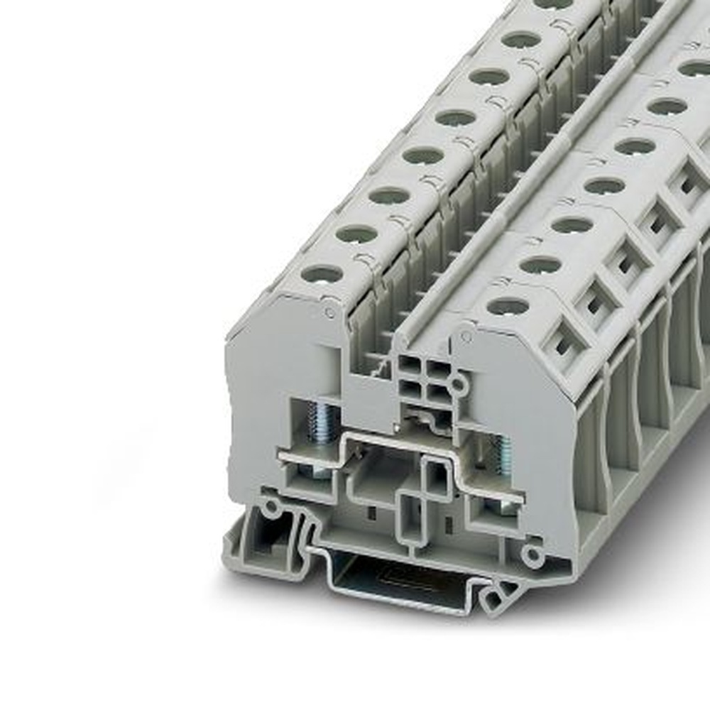 Phoenix Contact Bolzenanschlussklemme 3049026 Typ RT 5 Bolzenanschlussklemme Bolzenanschlussklemme, Achtung: bei nicht isolierten Kabelschuhen ist die Streckenverlängerung BE-RT. (siehe Zubehör) einzusetzen!, Nennspannung: 1000 V, Nennstrom: 41 A, Anschlussart: Bolzenanschluss, Bemessungsquerschnitt: 6 mm², Montageart: NS 35/7,5, NS 35/15, Farbe: grau Hersteller Phoenix Contact Nr. 3049026 Typ RT 5 EAN Nr. 4046356140799 Warengruppe Phoenix Contact Reihenklemmen