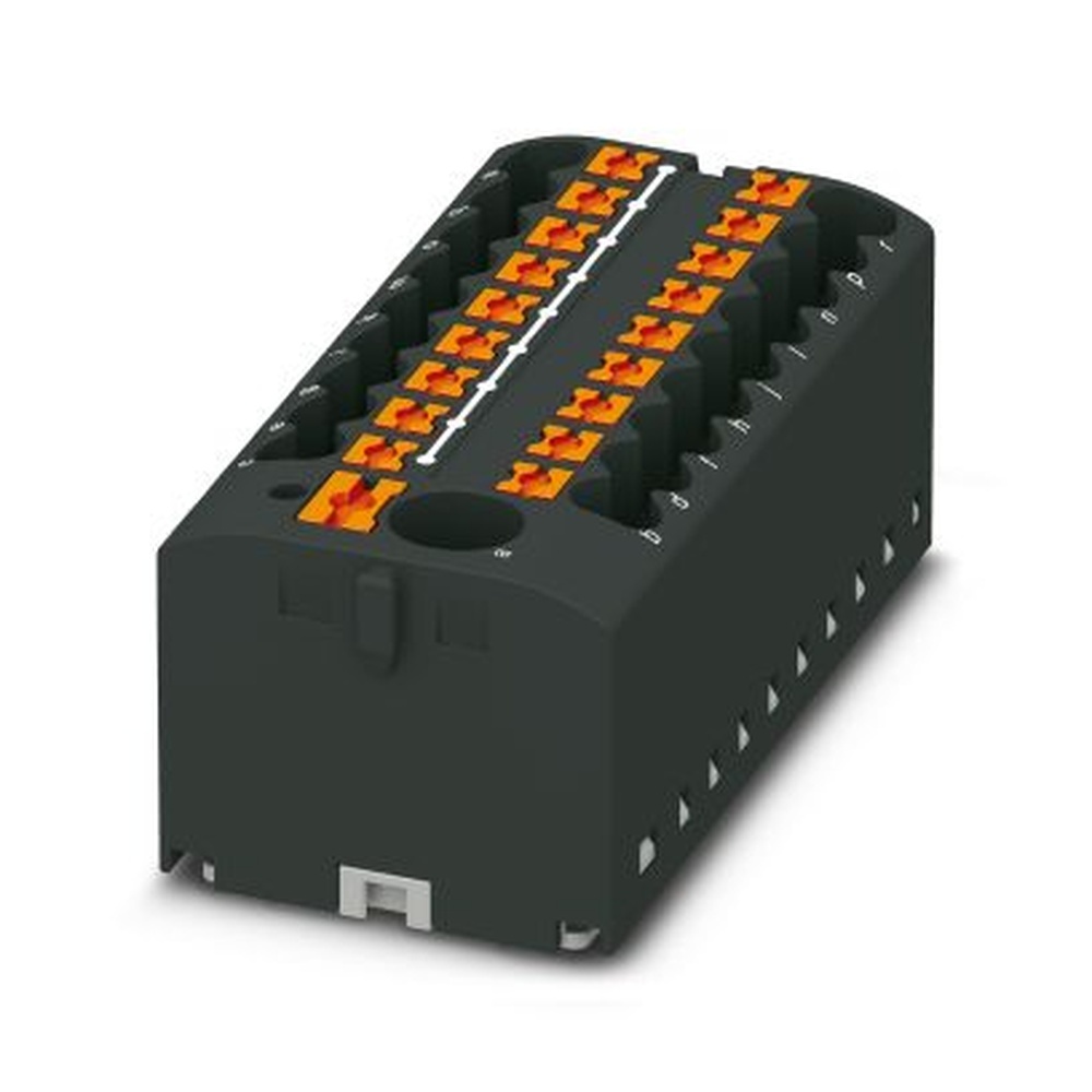 Phoenix Contact Verteilerblock 3273518 Typ PTFIX 6/18X2,5-G BK Verteilerblock Verteilerblock, die Blöcke sind untereinander über den Leiterschacht brückbar, passende Steckbrücken siehe Zubehör, Grundklemme mit Einspeisung, Nennspannung: 450 V, Nennstrom: 24 A, Anschlussart: Push-in-Anschluss, Abgriff, Querschnitt: 0,14 mm² - 4 mm², Push-in-Anschluss, Sammelanschluss, Bemessungsquerschnitt: 6 mm², Querschnitt: 0,5 mm² - 10 mm², Montageart: kleben, Farbe: schwarz Hersteller Phoenix Contact Nr. 3273518 Typ PTFIX 6/18X2,5-G BK EAN Nr. 4055626393360 Warengruppe Phoenix Contact Sensor Aktor Kabel