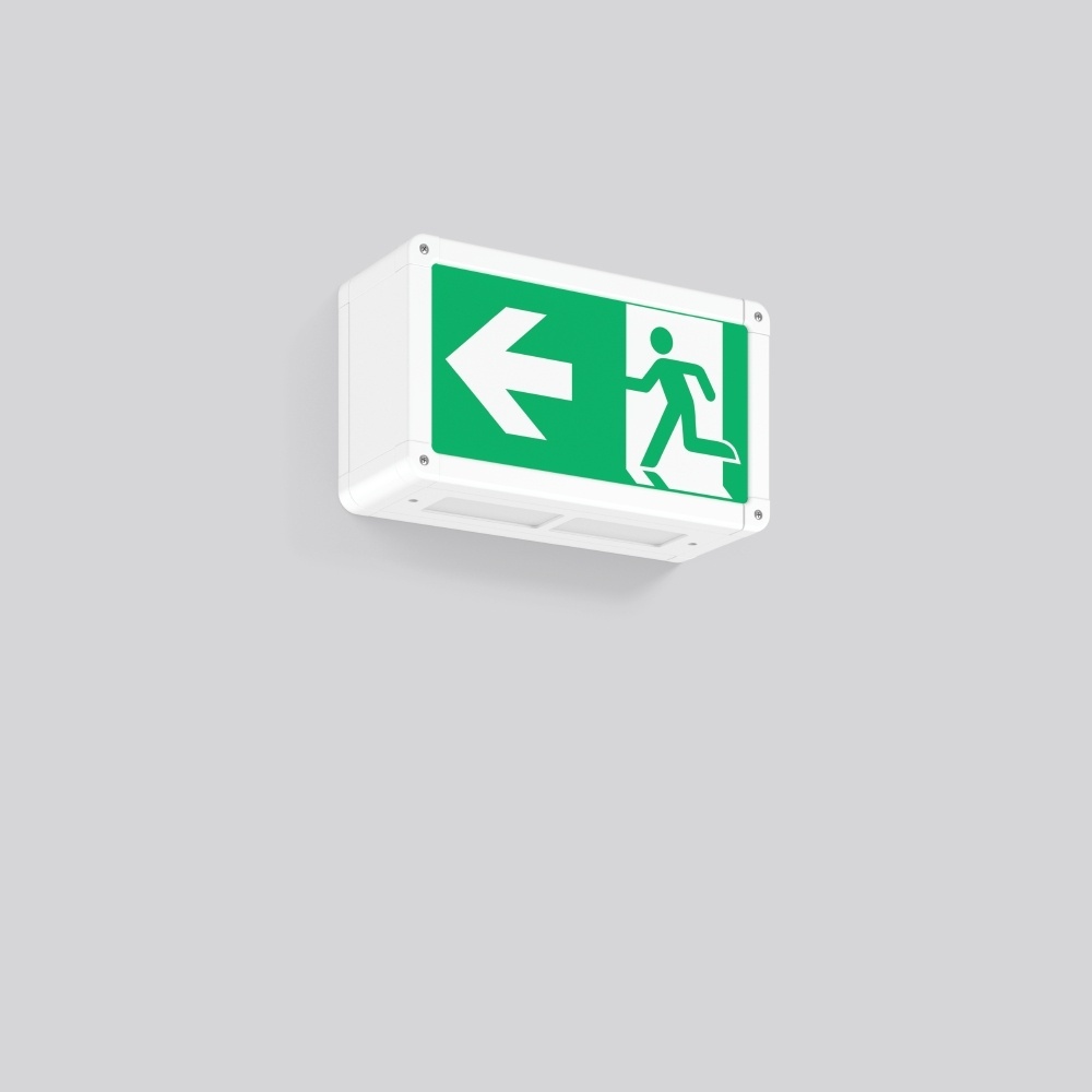 RZB Leuchte 651045.002.1 Energieeffiziensklasse F RECHTECK, 0,3/3 W, weiß Wandleuchten, L 250 B 90 H 140, EB, 8 h, Not-50 lm, automatischer Selbsttest Leuchte zur Rettungswegkennzeichnung. Gehäuse Aluminium mit Eckverbindungen Kunststoff. Kunststoffscheibe opal mit Rettungszeichen einseitig. Symbolnummer für Rettungszeichen bei Bestellung angeben! Hersteller RZB EAN Nr. 4051859987574 Warengruppe RZB Notleuchte