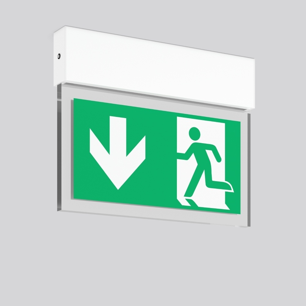RZB Leuchte 671744.002.1.07 Energieeffiziensklasse E HALYXX, weiß Deckenleuchten, L 340 B 40 H 270, EB, 3 h, DALI-Sibe Leuchte zur Rettungswegkennzeichnung. Gehäuse Aluminium-Strangpressprofil eloxiert oder pulverbeschichtet. Displayscheibe Kunststoff hochtransparent mit Rettungszeichen einseitig/zweiseitig. Betriebsgeräte integriert. Einzelbatteriesystem mit automatischem Selbsttest und Rückmeldung über DALI-Bus ausschließlich an das RZB DALI-Überwachungssystem. Symbolnummer für Rettungszeichen bei Bestellung angeben! Hersteller RZB EAN Nr. 4051859531449 Warengruppe RZB Notleuchte