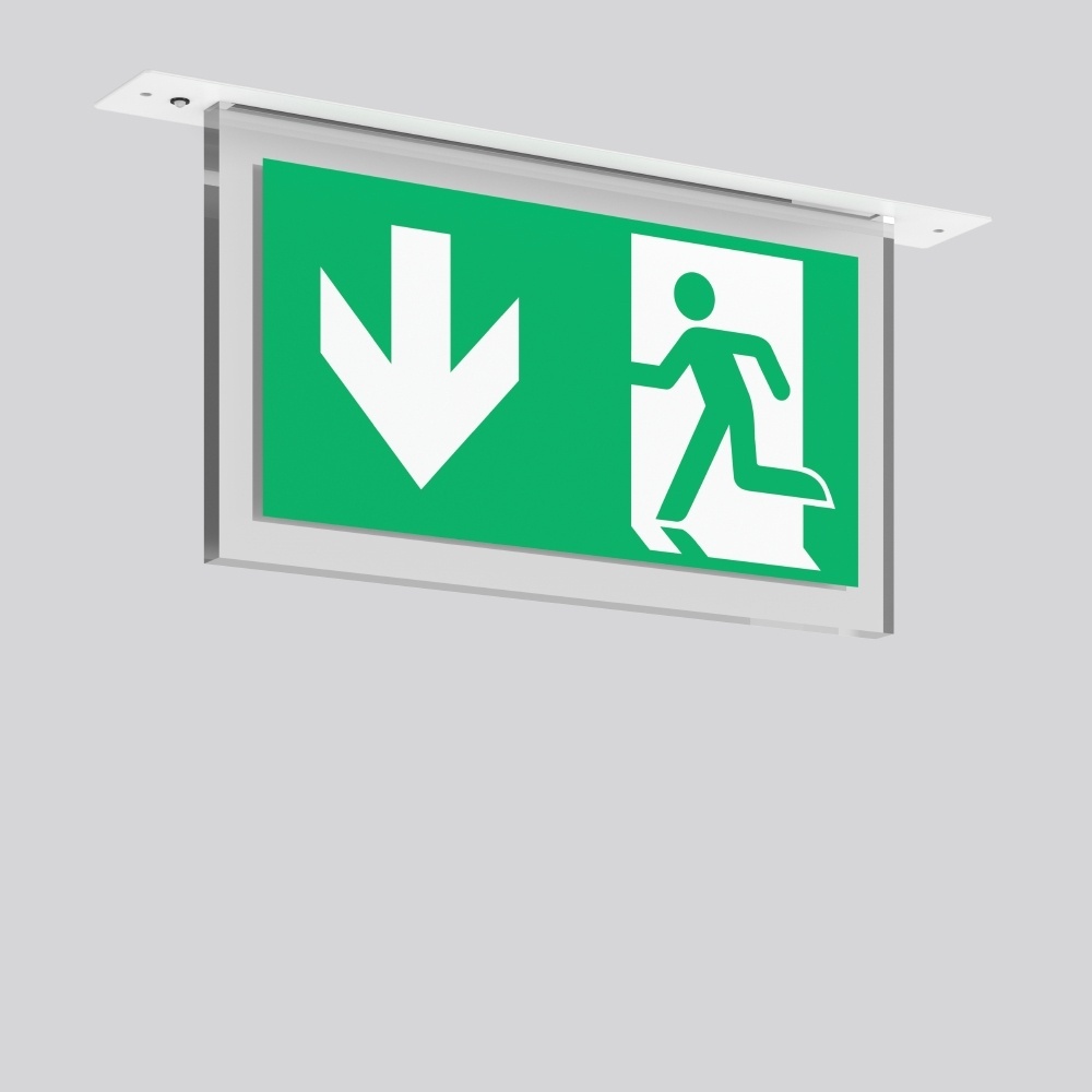 RZB Leuchte 671914.002.1.07 Energieeffiziensklasse E HALYXX, weiß Deckeneinbauleuchten, L 424 B 55 H 190, EB, 8 h, DALI-Sibe Leuchte zur Rettungswegkennzeichnung. Einbaugehäuse Stahlblech. Deckenplatte Edelstahl glänzend oder pulverbeschichtet. Displayscheibe Kunststoff hochtransparent mit Rettungszeichen einseitig/zweiseitig. Betriebsgeräte integriert. Einzelbatteriesystem mit automatischem Selbsttest und Rückmeldung über DALI-Bus ausschließlich an das RZB DALI-Überwachungssystem. Symbolnummer für Rettungszeichen bei Bestellung angeben! Hersteller RZB EAN Nr. 4051859533474 Warengruppe RZB Notleuchte