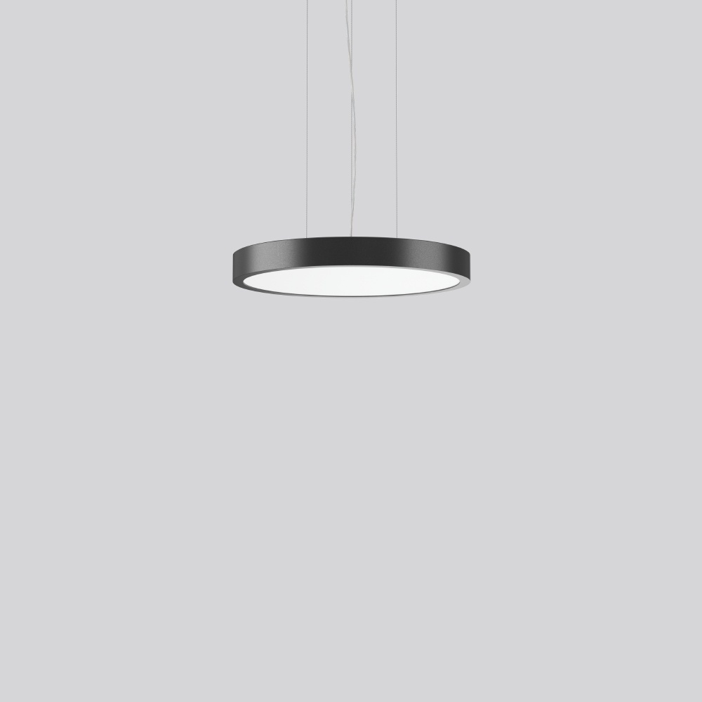 RZB Pendelleuchte Triona 312421.0031.2.730 Triona, 29 W, 2350 lm, 827-865, anthrazit, smart+free Pendelleuchten, D 461 H 52, 108 Grad, Kunststoff (PMMA) opal Dekorative runde LED Pendel-Flächenleuchte. Abdeckung Stahlblech pulverbeschichtet. Flacher nahtloser Rahmen Aluminium-Strangpressprofil pulverbeschichtet. Baldachin Aluminium pulverbeschichtet. Lichtaustritt über Diffusor Kunststoff opal. Diffusor und Lightguide aus vergilbungsfreiem Kunststoff (PMMA). Seitliche Lichteinkopplung (RZB SIDELITE-Technologie) für überdurchschnittlich homogene Leuchtdichteverteilung und randlose Ausleuchtung. Tunable White Versionen dynamisch einstellbar von 2700 K bis 6500 K. 3-Punkt Stahlseilabhängung stufenlos höhenverstellbar oder gewünschte Sonderlängen auf Anfrage. Betriebsgerät integriert. Mit smart+free Bluetooth Steuerung zur drahtlosen Vernetzung und Bedienung mittels Android/iOS Gerät, kostenlose App zum Download verfügbar. Prädestiniert für den Einsatz im Rahmen des Human Centric Lighting (HCL). Hersteller RZB Leuchten EAN Nr. 4051859435235 Warengruppe RZB Pendelleuchte