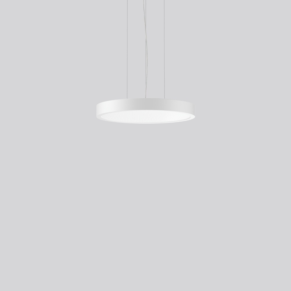 RZB Pendelleuchte Triona 312425.002.2.76 Triona, 29 W, 2550 lm, 827-865, weiß, DALI Pendelleuchten, D 461 H 52, 95 Grad, Kunststoff (PMMA) opal/prismatisch Dekorative runde LED Pendel-Flächenleuchte. Abdeckung Stahlblech pulverbeschichtet. Flacher nahtloser Rahmen Aluminium-Strangpressprofil pulverbeschichtet. Baldachin Aluminium pulverbeschichtet. Lichtaustritt über Diffusor Kunststoff opal/prismatisch. Diffusor und Lightguide aus vergilbungsfreiem Kunststoff (PMMA). Seitliche Lichteinkopplung (RZB SIDELITE-Technologie) für überdurchschnittlich homogene Leuchtdichteverteilung und randlose Ausleuchtung. Tunable White Versionen dynamisch einstellbar von 2700 K bis 6500 K. 3-Punkt Stahlseilabhängung stufenlos höhenverstellbar oder gewünschte Sonderlängen auf Anfrage. Betriebsgerät integriert. Hervorragend geeignet für Bürobereiche (UGR