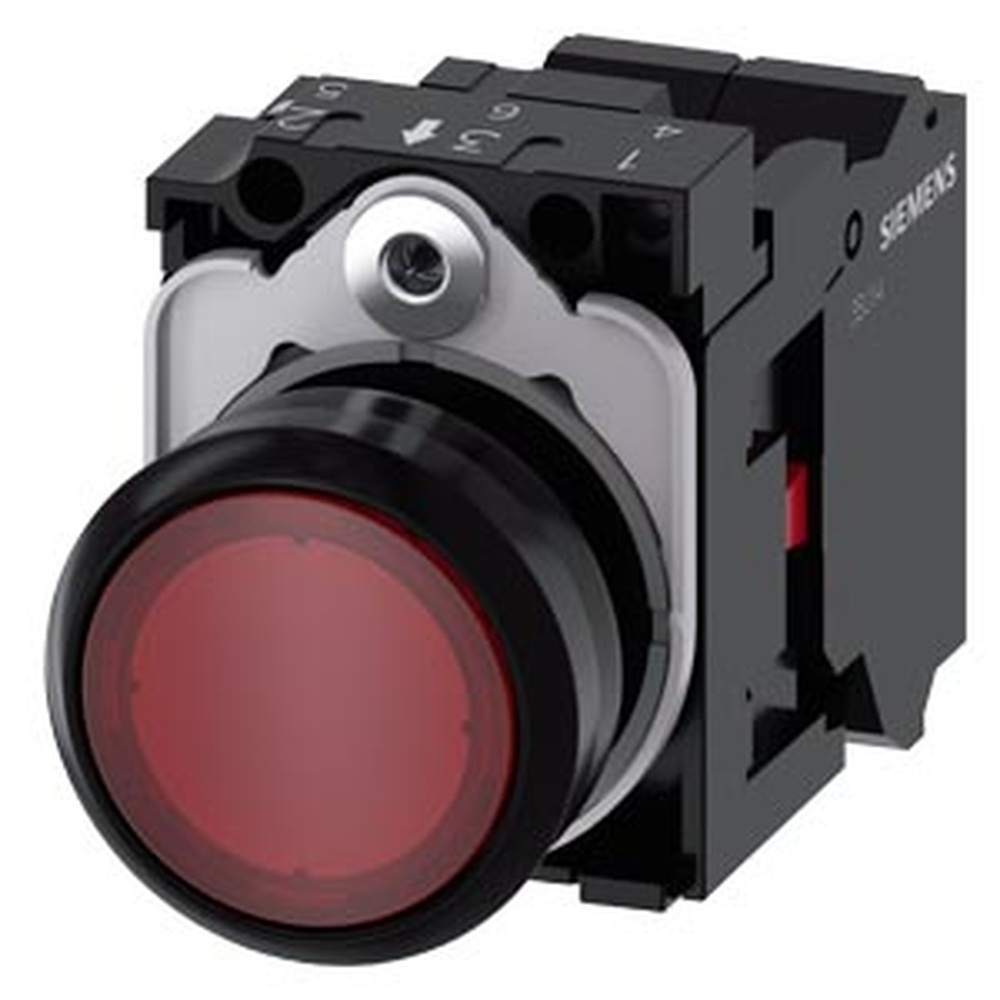 Siemens Drucktaster 3SU1106-0AB20-3CA0 Drucktaster, beleuchtet, 22mm, rund, Kunststoff, rot, 1Ö, AC 230V Leuchtdrucktaster, 22 mm, rund, Kunststoff, rot, Druckknopf, flach, tastend, mit Halter, 1Ö, LED-Modul mit integrierter LED AC 230 V, Federzuganschluss Leuchtdrucktaster SIRIUS ACT zur Schaltung und Steuerung elektrischer Verbraucher.Unter dem Markennamen SIRIUS ACT bietet Siemens ein einzigartiges Portfolio an Befehls- und Meldegeräten mit weltweiten Produkt-Zulassungen in drei modernen Designreihen aus robustem Echtmetall und hochwertigem Kunststoff.Das innovative Aufschnappkonzept vereinfacht die Montage so weit, dass dafür nur eine Hand und kein Spezialwerkzeug erforderlich ist. Als Montagebohrungen genügen nutfreie Löcher, da bereits ein 100%igerVerdrehschutz integriert ist.Dank der durchgängig hohen Schutzart sind die robusten Geräte industrietauglich und für den Außeneinsatz geeignet. Sogar die Reinigung mit Hochdruckstrahl ist möglich. Weder Staub, Öle noch aggressive Laugen können den zuverlässigen Betrieb stören.Neben der Standardverdrahtung können die meisten Geräte auch über PROFINET, AS-Interface oder IO-Link an die Steuerung angebunden werden. Damit reduzieren Sie Ihren Verdrahtungsaufwand, minimieren Fehlerquellen und gewinnen mehr Flexibilität.Komfortabel unterstützt der grafische Online-Konfigurator bei Auswahl und Bestellung von Einzelgeräten, Gehäusen und Beschriftungen. Umfangreiche Dokumentation (z.B. Handbuch, 3D-Daten, Anschlussdiagramm) ist verfügbar.Lieferbare Ausführungen: mehrere Farben, beleuchtet/unbeleuchtet, mit/ohne Beschriftung, verrastende/tastende Betätigung, verschiedene Druckknopf- und Frontringhöhen.Hinweis: Komplettgerät, Lieferung inklusive Halter und Module.SIRIUS ACT-Performance in Action beim Befehlen und Melden. Einfach montiert, einfach stark, einfach perfekt. Hersteller Siemens Nr. 3SU11060AB203CA0 EAN Nr. 4011209959491 Warengruppe Siemens Befehls- Meldegeräte