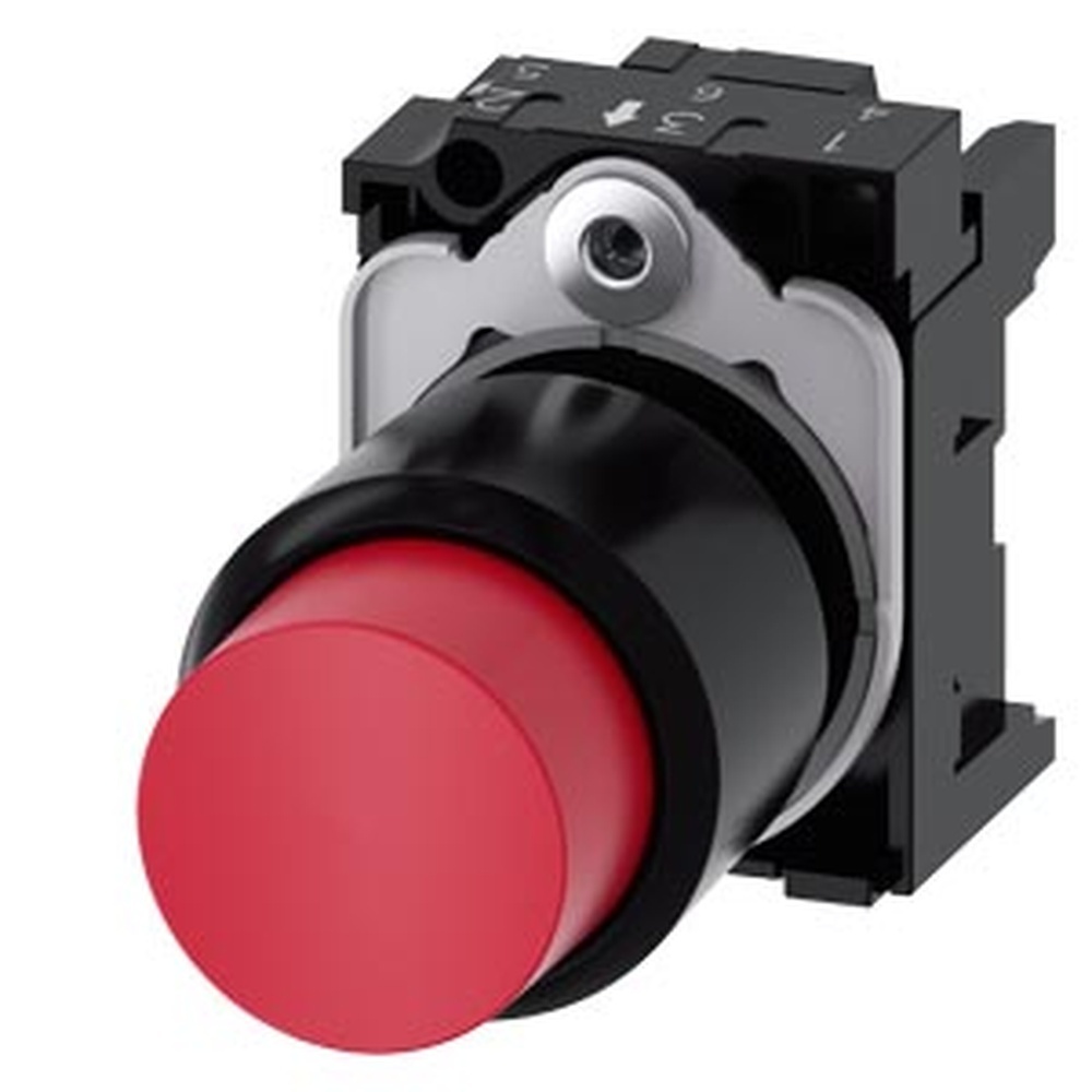 Siemens Drucktaster 3SU1200-0FB20-0AA0 Drucktaster mit verlängertem Hub (12 mm), 22 mm, rund, Kunststoff, rot Drucktaster, kompakt, mit verlängertem Hub (12 mm), 22 mm, rund, Kunststoff, rot, Druckknopf, hoch, tastend, mit Halter Drucktaster SIRIUS ACT zur Schaltung und Steuerung elektrischer Verbraucher.Unter dem Markennamen SIRIUS ACT bietet Siemens ein einzigartiges Portfolio an Befehls- und Meldegeräten mit weltweiten Produkt-Zulassungen in drei modernen Designreihen aus robustem Echtmetall und hochwertigem Kunststoff.Das innovative Aufschnappkonzept vereinfacht die Montage so weit, dass dafür nur eine Hand und kein Spezialwerkzeug erforderlich ist. Als Montagebohrungen genügen nutfreie Löcher, da bereits ein 100%iger Verdrehschutz integriert ist.Dank der durchgängig hohen Schutzart sind die robusten Geräte industrietauglich und für den Außeneinsatz geeignet. Sogar die Reinigung mit Hochdruckstrahl ist möglich. Weder Staub, Öle noch aggressive Laugen können den zuverlässigen Betrieb stören.Neben der Standardverdrahtung können die meisten Geräte auch über PROFINET, AS-Interface oder IO-Link an die Steuerung angebunden werden. Damit reduzieren Sie Ihren Verdrahtungsaufwand, minimieren Fehlerquellen und gewinnen mehr Flexibilität.Komfortabel unterstützt der grafische Online-Konfigurator bei Auswahl und Bestellung von Einzelgeräten, Gehäusen und Beschriftungen. Umfangreiche Dokumentation (z.B. Handbuch, 3D-Daten, Anschlussdiagramm) ist verfügbar.Lieferbare Ausführungen: mehrere Farben, beleuchtet/unbeleuchtet, mit/ohne Beschriftung, verrastende/tastende Betätigung, verschiedene Druckknopf- und Frontringhöhen.Hinweis: Kompaktgerät mit mechanischer Schaltfunktion, kann nur mit Verlängerungsstößel (3SU1900-0KG10-0AA0) eingesetzt werden. Lieferung inklusive Halter.SIRIUS ACT-Performance in Action beim Befehlen und Melden. Einfach montiert, einfach stark, einfach perfekt. Hersteller Siemens Nr. 3SU12000FB200AA0 EAN Nr. 4047621015286 Warengruppe Siemens Befehls- Meldegeräte