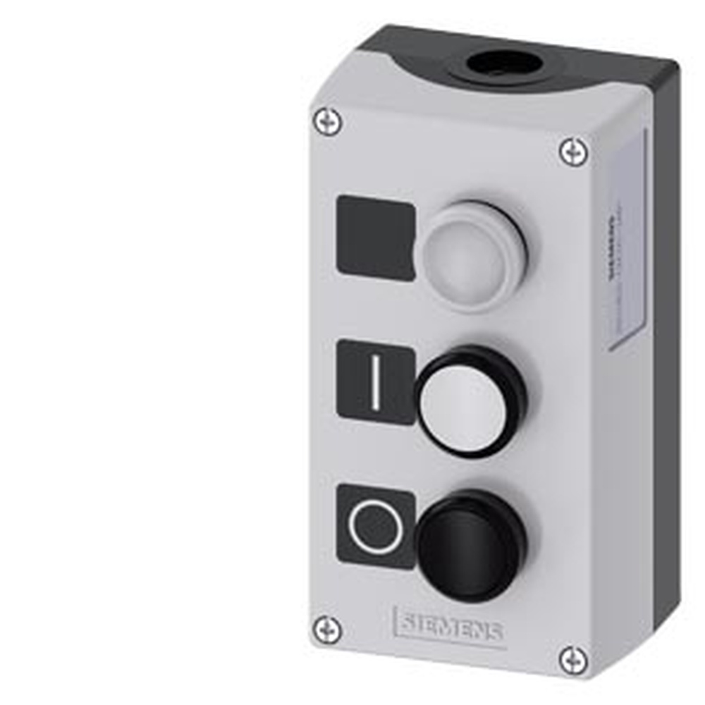 Siemens Gehäuse 3SU1803-0AC00-2AB1 Gehäuse für Befehlsgeräte, 22mm, rund, Druckknopf weiß Gehäuse für Befehlsgeräte, 22 mm, rund, Gehäusematerial Kunststoff, Gehäuseoberteil grau, 3 Befehlsstellen Kunststoff, C=Leuchtmelder klar, Schild, LED 24 V, Schraubanschluss, B=Drucktaster weiß, Schild: I, 1S, Schraubanschluss, A=Drucktaster schwarz,Schild:O, 1Ö, Schraubanschluss, Bodenbefestigung, oben und unten je 1xM20, Schilder beigelegt Gehäuse SIRIUS ACT für die Montage der 22,5 mm Befehls- und Meldegeräte bei räumlich getrennter Anordnung von Steuereinheiten und Schaltschränken.Unter dem Markennamen SIRIUS ACT bietet Siemens ein einzigartiges Portfolio an Befehls- und Meldegeräten mit weltweiten Produkt-Zulassungen in drei modernen Designreihen aus robustem Echtmetall und hochwertigem Kunststoff.Das innovative Aufschnappkonzept vereinfacht die Montage so weit, dass dafür nur eine Hand und kein Spezialwerkzeug erforderlich ist. Als Montagebohrungen genügen nutfreie Löcher, da bereits ein 100%iger Verdrehschutz integriert ist.Dank der durchgängig hohen Schutzart sind die robusten Geräte industrietauglich und für den Außeneinsatz geeignet. Sogar die Reinigung mit Hochdruckstrahl ist möglich. Weder Staub, Öle noch aggressive Laugen können den zuverlässigen Betrieb stören.Neben der Standardverdrahtung können die meisten Geräte auch über PROFINET, AS-Interface oder IO-Link an die Steuerung angebunden werden. Damit reduzieren Sie Ihren Verdrahtungsaufwand, minimieren Fehlerquellen und gewinnen mehr Flexibilität.Komfortabel unterstützt der grafische Online-Konfigurator bei Auswahl und Bestellung von Einzelgeräten, Gehäusen und Beschriftungen. Umfangreiche Dokumentation (z.B. Handbuch, 3D-Daten, Anschlussdiagramm) ist verfügbar.Lieferbare Ausführungen: gelb/grau, Kunststoff/Metall, 1-6 Befehlstellen, Leergehäuse/Vorbestückung, wahlweise mit AS-Interface-Anbindung.SIRIUS ACT-Performance in Action beim Befehlen und Melden. Einfach montiert, einfach stark, einfach perfekt. Hersteller Siemens Nr. 3SU18030AC002AB1 EAN Nr. 4011209970229 Warengruppe Siemens Befehls- Meldegeräte