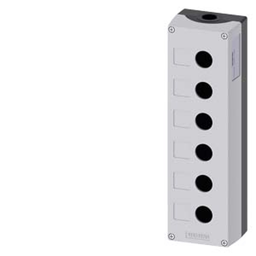 Siemens Gehäuse 3SU1856-0AA00-0AB1 Gehäuse für Befehlsgeräte, 22mm, rund, Metall, grau, 6 Befehlstellen Gehäuse für Befehlsgeräte, 22 mm, rund, Gehäusematerial Metall, Gehäuseoberteil grau, 6 Befehlsstellen, ohne Bestückung, Vertiefung für Schilder, Bodenbefestigung, oben und unten je 1xM25 Gehäuse SIRIUS ACT für die Montage der 22,5 mm Befehls- und Meldegeräte bei räumlich getrennter Anordnung von Steuereinheiten und Schaltschränken.Unter dem Markennamen SIRIUS ACT bietet Siemens ein einzigartiges Portfolio an Befehls- und Meldegeräten mit weltweiten Produkt-Zulassungen in drei modernen Designreihen aus robustem Echtmetall und hochwertigem Kunststoff.Das innovative Aufschnappkonzept vereinfacht die Montage so weit, dass dafür nur eine Hand und kein Spezialwerkzeug erforderlich ist. Als Montagebohrungen genügen nutfreie Löcher, da bereits ein 100%iger Verdrehschutz integriert ist.Dank der durchgängig hohen Schutzart sind die robusten Geräte industrietauglich und für den Außeneinsatz geeignet. Sogar die Reinigung mit Hochdruckstrahl ist möglich. Weder Staub, Öle noch aggressive Laugen können den zuverlässigen Betrieb stören.Neben der Standardverdrahtung können die meisten Geräte auch über PROFINET, AS-Interface oder IO-Link an die Steuerung angebunden werden. Damit reduzieren Sie Ihren Verdrahtungsaufwand, minimieren Fehlerquellen und gewinnen mehr Flexibilität.Komfortabel unterstützt der grafische Online-Konfigurator bei Auswahl und Bestellung von Einzelgeräten, Gehäusen und Beschriftungen. Umfangreiche Dokumentation (z.B. Handbuch, 3D-Daten, Anschlussdiagramm) ist verfügbar.Lieferbare Ausführungen: gelb/grau, Kunststoff/Metall, 1-6 Befehlstellen, Leergehäuse/Vorbestückung, wahlweise mit AS-Interface-Anbindung.SIRIUS ACT-Performance in Action beim Befehlen und Melden. Einfach montiert, einfach stark, einfach perfekt. Hersteller Siemens Nr. 3SU18560AA000AB1 EAN Nr. 4011209970298 Warengruppe Siemens Befehls- Meldegeräte