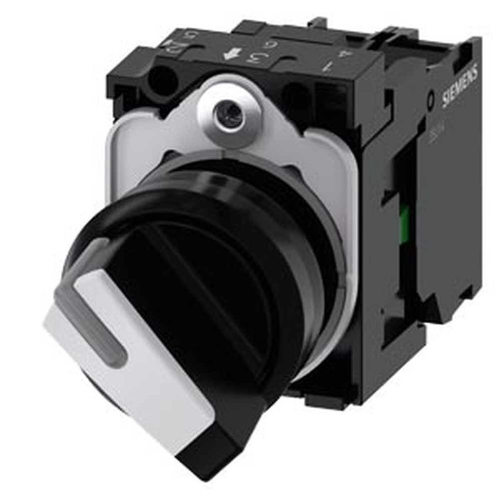 Siemens Knebelschalter 3SU1103-2BF60-1BA0 Knebelschalter, beleuchtbar, 22mm, rund, Kunststoff, schwarz, weiß, AC 110V, 1S Knebelschalter, beleuchtbar, 22 mm, rund, Kunststoff, weiß, Knebel, kurz, 2 Schaltstellungen O-I, verrastend, 10:30h/13:30h, mit Halter, mit LED-Modul, mit integrierter LED AC 110 V, 1S, Schraubanschluss Knebelschalter SIRIUS ACT zur Schaltung und Steuerung elektrischer Verbraucher.Unter dem Markennamen SIRIUS ACT bietet Siemens ein einzigartiges Portfolio an Befehls- und Meldegeräten mit weltweiten Produkt-Zulassungen in drei modernen Designreihen aus robustem Echtmetall und hochwertigem Kunststoff.Das innovative Aufschnappkonzept vereinfacht die Montage so weit, dass dafür nur eine Hand und kein Spezialwerkzeug erforderlich ist. Als Montagebohrungen genügen nutfreie Löcher, da bereits ein 100%iger Verdrehschutz integriert ist.Dank der durchgängig hohen Schutzart sind die robusten Geräte industrietauglich und für den Außeneinsatz geeignet. Sogar die Reinigung mit Hochdruckstrahl ist möglich. Weder Staub, Öle noch aggressive Laugen können den zuverlässigen Betrieb stören.Neben der Standardverdrahtung können die meisten Geräte auch über PROFINET, AS-Interface oder IO-Link an die Steuerung angebunden werden. Damit reduzieren Sie Ihren Verdrahtungsaufwand, minimieren Fehlerquellen und gewinnen mehr Flexibilität.Komfortabel unterstützt der grafische Online-Konfigurator bei Auswahl und Bestellung von Einzelgeräten, Gehäusen und Beschriftungen. Umfangreiche Dokumentation (z.B. Handbuch, 3D-Daten, Anschlussdiagramm) ist verfügbar.Lieferbare Ausführungen: mehrere Farben, 2-4 Schaltstellungen, kurzer/langer Knebel oder Drehknopf, beleuchtet/unbeleuchtet (Beleuchtung auch nachrüstbar), verrastende/tastende Betätigung.Hinweis: Komplettgerät, Lieferung inklusive Halter und Module.SIRIUS ACT-Performance in Action beim Befehlen und Melden. Einfach montiert, einfach stark, einfach perfekt. Hersteller Siemens Nr. 3SU11032BF601BA0 EAN Nr. 4011209957664 Warengruppe Siemens Befehls- Meldegeräte