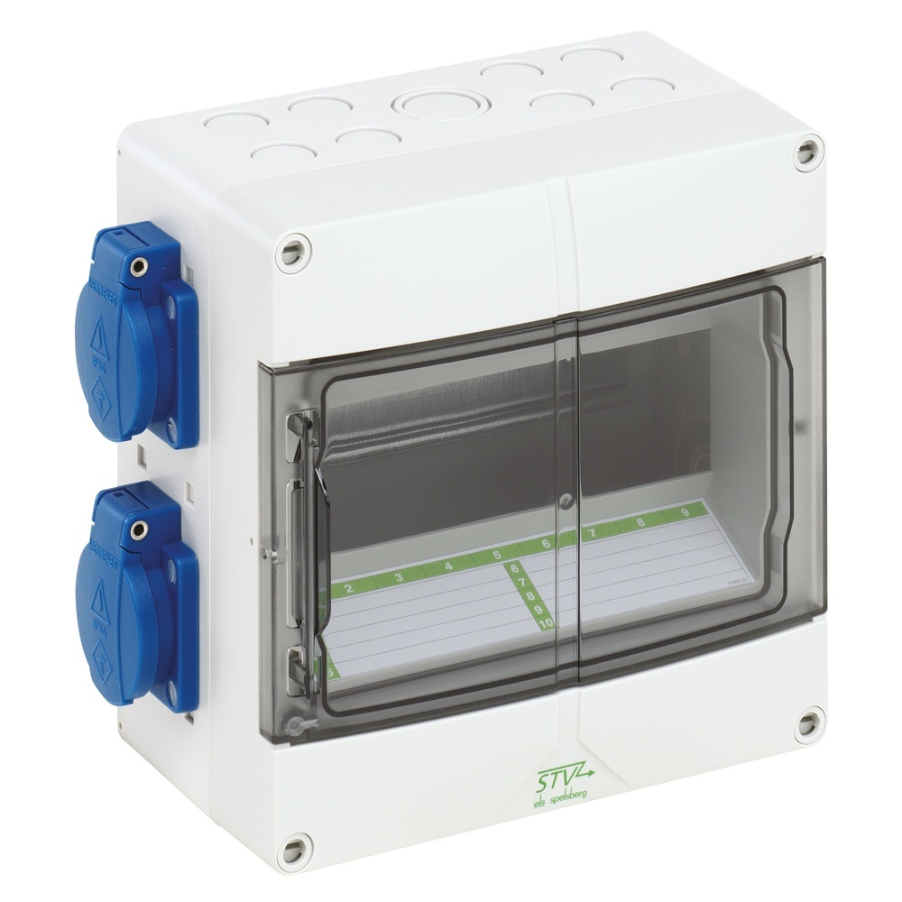 Spelsberg Steckdosen Kombination 72930401 Typ STV 904-S Steckdosenkombination STV 904-S, STV-Steckdosenverteiler und STG-Steckdosengehäuse. Hohe mechanische Belastbarkeit, temperaturunempfindlich, kominierbar. Verfügbar in den Variante leer, vorverdrahtet und anschlussfertig., mit Schutzart IP44, 200x200x122 EAN Nr. 4013902934560 Warengruppe Spelsberg Steckdosenverteiler