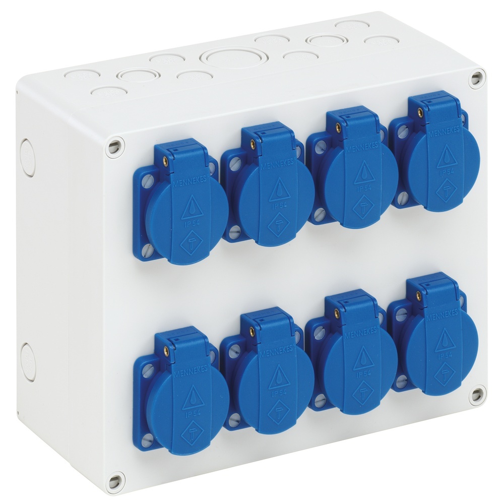 Spelsberg Steckdosengehäuse 73220801 Typ STG 008 Steckdosengehäuse STG 008, STV-Steckdosenverteiler und STG-Steckdosengehäuse. Hohe mechanische Belastbarkeit, temperaturunempfindlich, kominierbar. Verfügbar in den Variante leer, vorverdrahtet und anschlussfertig., mit Schutzart IP44, 125x200x122 EAN Nr. 4013902934980 Warengruppe Spelsberg Steckdosenverteiler