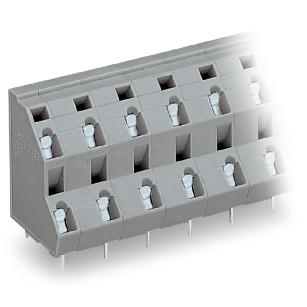 Wago Doppelstock Klemmenleiste 736-712 Doppelstock-Klemmenleiste 2 Lötstifte in Reihe 12x2-polig Rastermaß 10 mm/0.394 in grau Wago Serie 736 EAN Nr. 4044918909839 Warengruppe WAGO Durchführungsklemmen