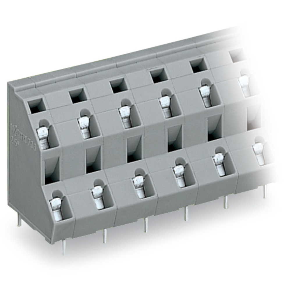 Wago Doppelstock Klemmenleiste 736-762 Doppelstock-Klemmenleiste 2 Lötstifte um das halbe Rastermaß versetzt 12x2-polig Rastermaß 10 mm/0.394 in grau Wago Serie 736 EAN Nr. 4044918911184 Warengruppe WAGO Durchführungsklemmen