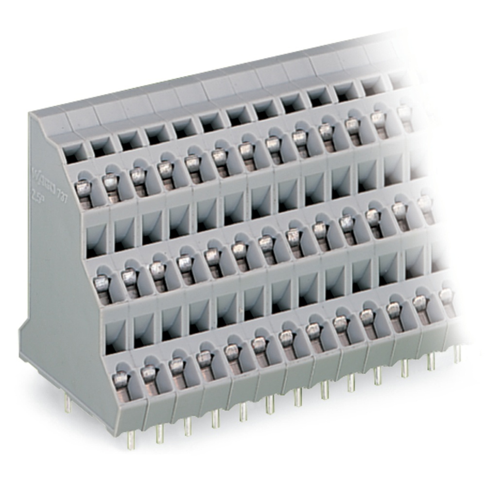 Wago Dreistock Klemmenleiste 737-216 Dreistock-Klemmenleiste Lötstifte für Stockwerk 2 um das 1/2 Rastermaß versetzt 16x3-polig Rastermaß 5 mm/0.197 in grau Wago Serie 737 EAN Nr. 4045454022822 Warengruppe WAGO Durchführungsklemmen