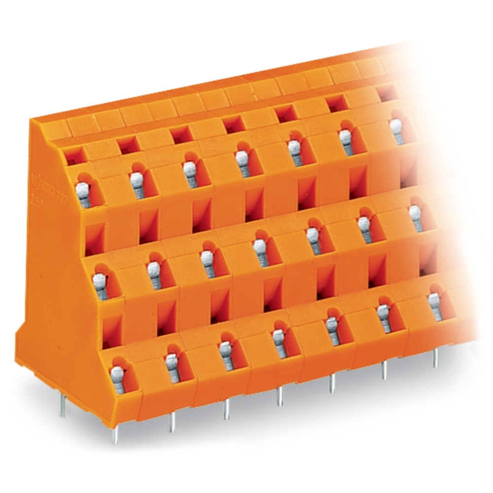 Wago Dreistock Klemmenleiste 737-858 Dreistock-Klemmenleiste Lötstifte für Stockwerk 2 um das 1/2 Rastermaß versetzt 8x3-polig Rastermaß 10,16 mm/0.4 in orange Wago Serie 737 EAN Nr. 4045454019945 Warengruppe WAGO Durchführungsklemmen