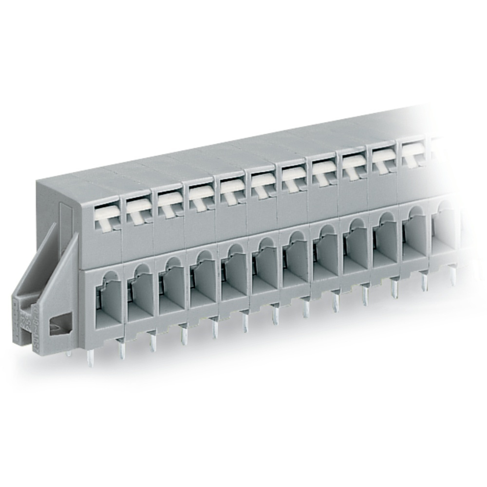 Wago Durchführungsklemmenleiste 741-146 Durchführungsklemmenleiste mit Befestigungsflanschen und Betätigungsdrückern 2 Lötstifte/Pol 16-polig mit Tipp-Prüfmöglichkeit Rastermaß 5 mm/0.197 in grau Wago Serie 741 EAN Nr. 4044918679794 Warengruppe WAGO Durchführungsklemmen