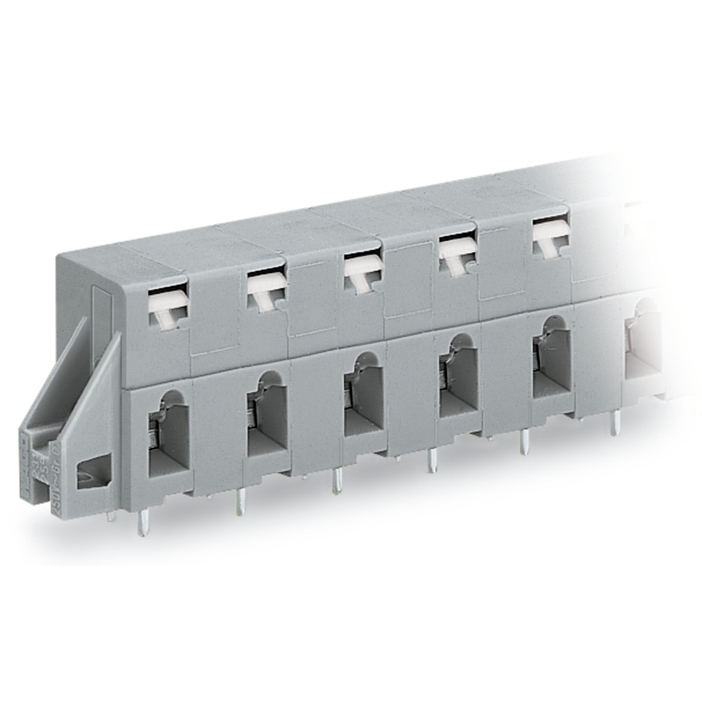 Wago Durchführungsklemmenleiste 741-528 Durchführungsklemmenleiste mit Befestigungsflanschen und Betätigungsdrückern 2 Lötstifte/Pol 8-polig mit Tipp-Prüfmöglichkeit Rastermaß 10 mm/0.394 in grau Wago Serie 741 EAN Nr. 4044918679459 Warengruppe WAGO Durchführungsklemmen