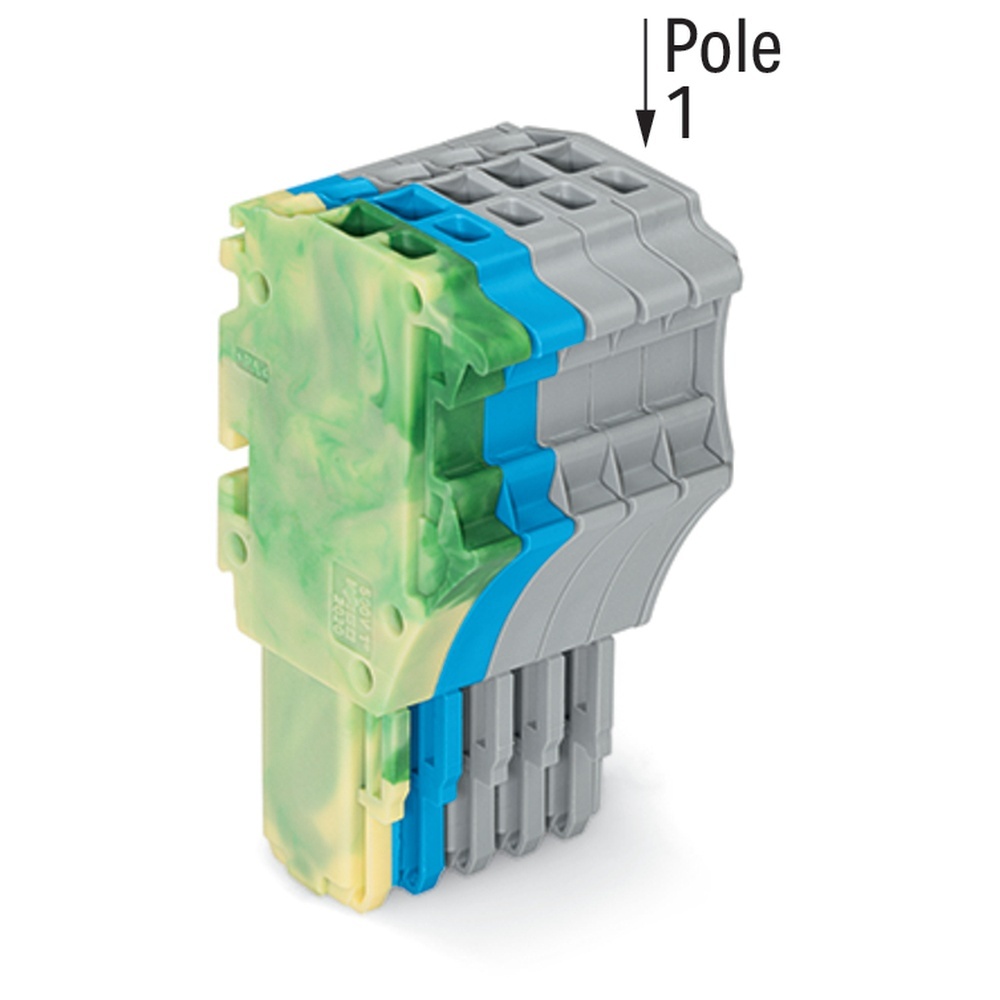 Wago Federleiste 2020-105/000-039 1-Leiter-Federleiste mit PE-Endmodul (grün-gelb) zum Einstecken in Basisklemmen kodierbar 5-polig grau, blau, grün-gelb Wago Serie 2020 EAN Nr. 4050821027379 Warengruppe WAGOxCOM System