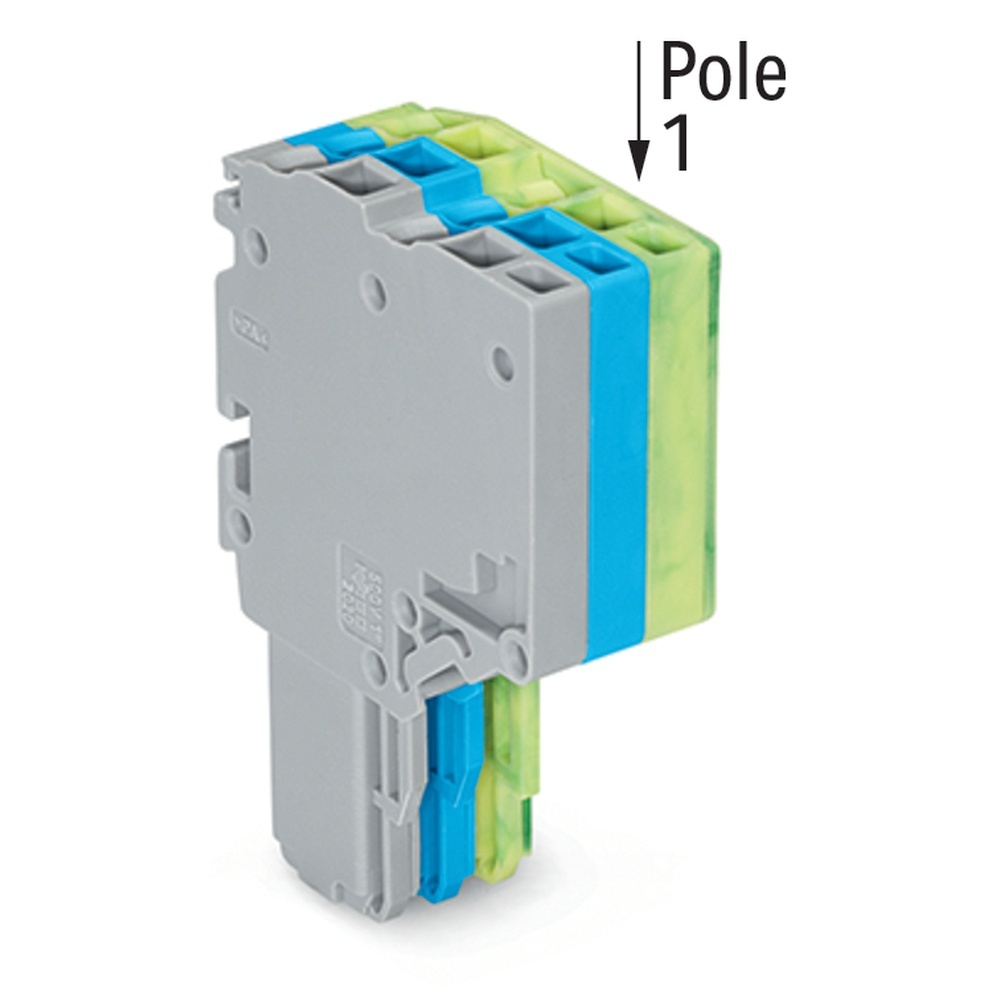 Wago Federleiste 2020-203/000-038 2-Leiter-Federleiste mit PE-Anfangsmodul (grün-gelb) zum Einstecken in Basisklemmen kodierbar 3-polig grau, blau, grün-gelb Wago Serie 2020 EAN Nr. 4050821091486 Warengruppe WAGOxCOM System