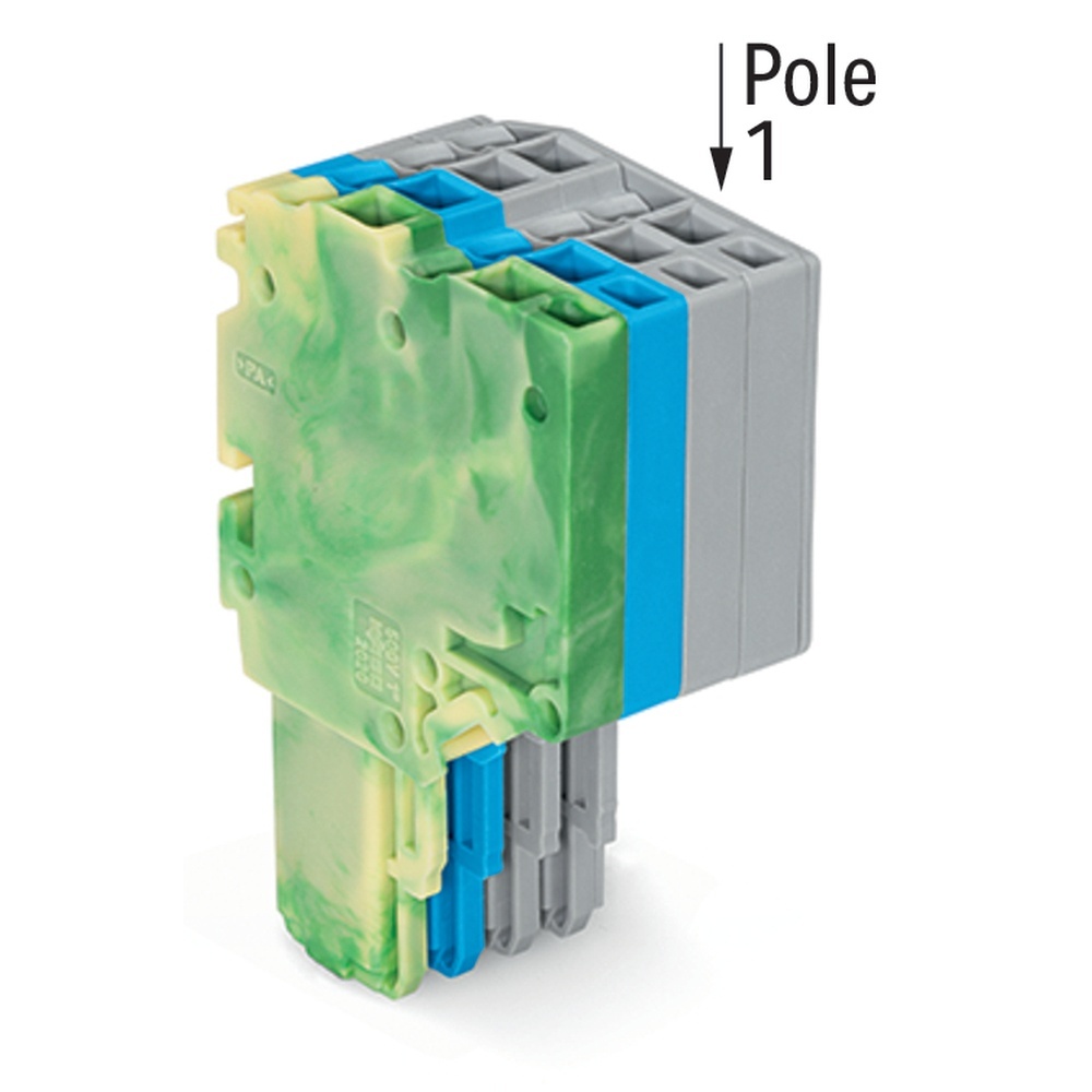 Wago Federleiste 2020-204/000-039 2-Leiter-Federleiste mit PE-Endmodul (grün-gelb) zum Einstecken in Basisklemmen kodierbar 4-polig grün-gelb, blau, grau Wago Serie 2020 EAN Nr. 4050821091561 Warengruppe WAGOxCOM System