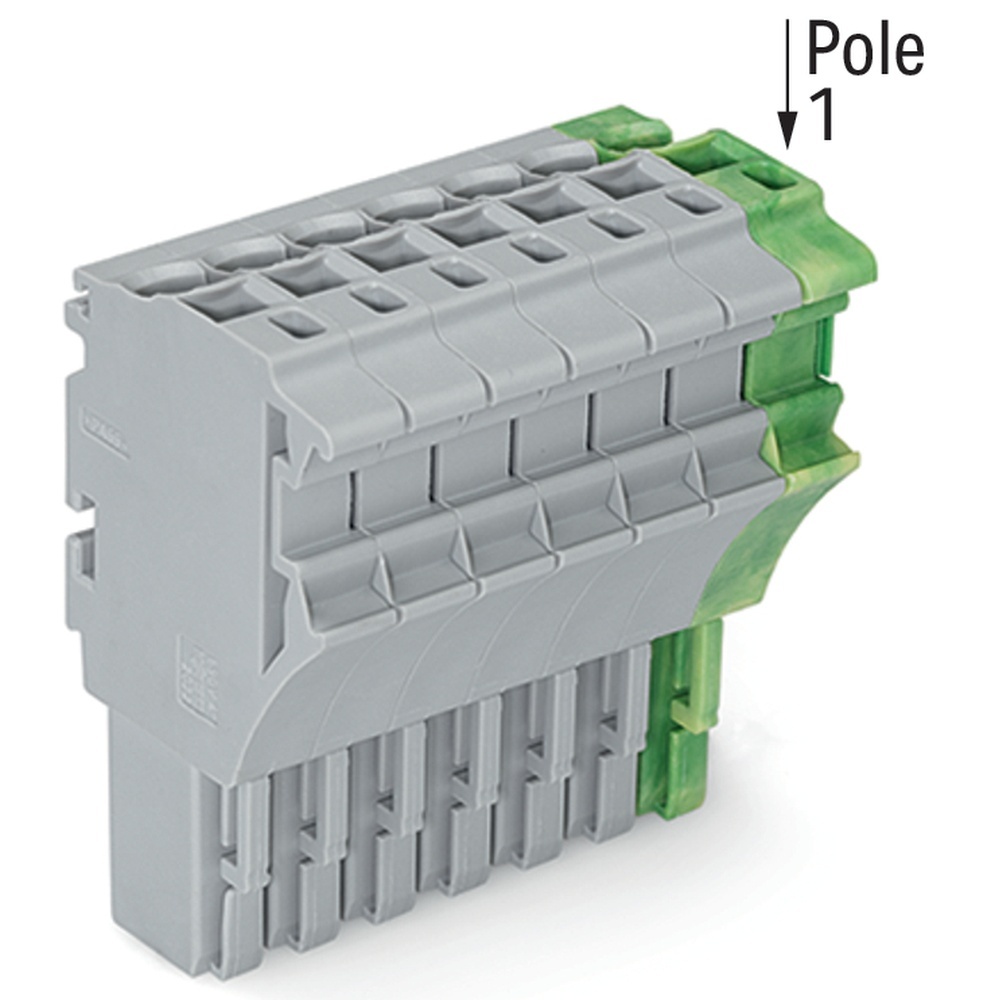 Wago Federleiste 2022-107/000-036 1-Leiter-Federleiste mit PE-Anfangsmodul (grün-gelb) zum Einstecken in Basisklemmen kodierbar 7-polig grau, grün-gelb Wago Serie 2022 EAN Nr. 4045454912857 Warengruppe WAGOxCOM System