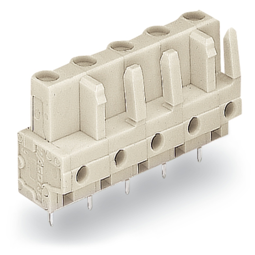 Wago Federleiste 722-735 Federleiste mit geraden Lötstiften 5-polig Rastermaß 7,5 mm/0.295 in 100 % fehlsteckgeschützt Einlötstift 0,6x1 mm kodierbar Steckrichtung senkrecht zur Leiterplatte mit 2 Rastnasen mit Kodiernase lichtgrau Wago Serie 722 EAN Nr. 4044918580892 Warengruppe WAGO Multistecksystem