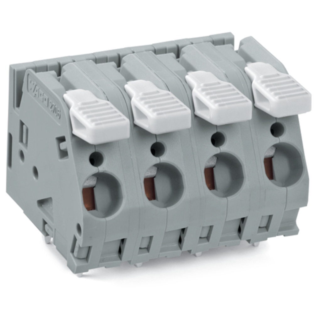 Wago Klemmenleiste 2706-259 Klemmenleisten mit Betätigungshebeln und Brückungsschacht 2 Lötstifte/Pol 9-polig Rastermaß 10 mm/0.394 in grau Hersteller WAGO Serie 2706 EAN Nr. 4050821093404 Warengruppe WAGO Durchführungsklemmen