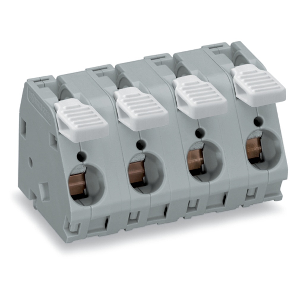 Wago Klemmenleiste 2716-207 Klemmenleiste mit Betätigungshebeln 4 Lötstifte/Pol 7-polig Rastermaß 15 mm/0.591 in ohne Brückerschacht grau Hersteller WAGO Serie 2716 EAN Nr. 4045454739461 Warengruppe WAGO Durchführungsklemmen