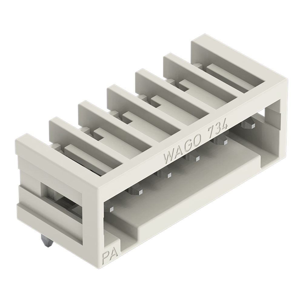 Wago Stiftleiste 734-163 Stiftleiste mit abgewinkelten Lötstiften 3-polig Rastermaß 3,5 mm/0.138 in 100 % fehlsteckgeschützt mit Seitenwänden Steckrichtung parallel zur Leiterplatte lichtgrau Wago Serie 734 EAN Nr. 4044918872232 Warengruppe WAGO Multistecksystem