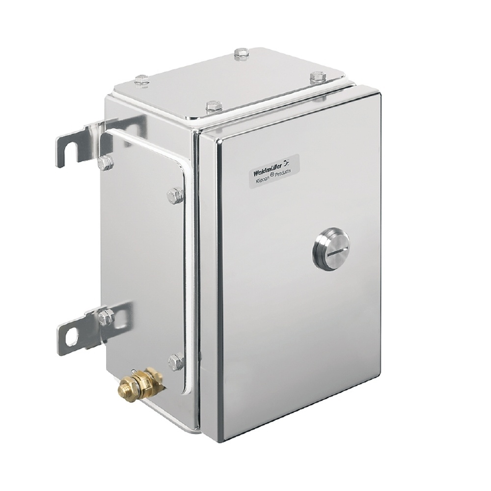 Weidmüller Gehäuse 1199880000 Typ KTB QL 221513 S4E3 Ex-Metallgehäuse, 152x229x133 mm, elektropoliert, Flanschplatte Ja, unten, links, rechts, Vierteldrehverschluss mit Schlitzeinsatz Edelstahlgehäuse für den Einsatz in explosionsgefährdeten Bereichen Die Klippon TB Gehäusereihe bietet hervorragende Leistungsmerkmale, selbst bei den schwierigsten Umgebungsbedingungen und entsprechen den steigenden Anforderungen von explosiongefährdeten Bereichen, die speziell in der Prozessindustrie und in der Engergiegewinnung zu finden sind.Die neue Klippon TB QL Gehäusereihe bietet weitere Verbesserungen einer bereits erfolgreichen und marktführenden Produktreihe.Technische Daten Ex-Metallgehäuse, 152x229x133 mm, elektropoliert, Flanschplatte Ja, unten, links, rechts, Vierteldrehverschluss mit Schlitzeinsatz Herstellertyp KTBQL221513S4E3 EAN Nr. 4032248982738 Warengruppe Weidmüller Gehäuse