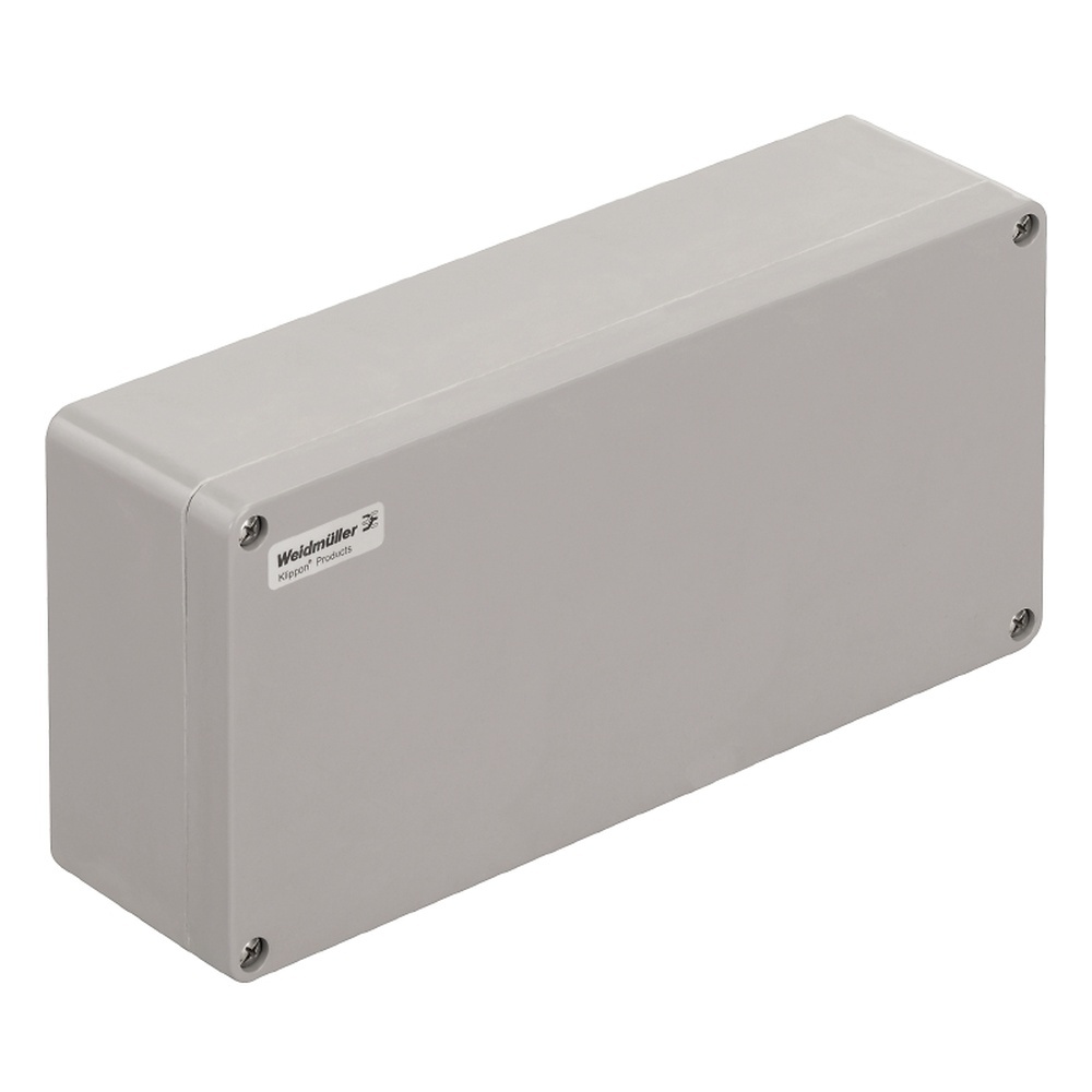 Weidmüller Gehäuse 1305910000 Typ KLIPPON POK 163609 Kunststoffgehäuse, 360x160x90 mm, glasfaser-verstärktes Polyester, unbehandelt, glänzend, silbergrau Klippon POK – PolyestergehäuseDie glasfaserverstärkten Polyestergehäuse der Reihe Klippon POK bietet eine hochwertige Lösung für elektrischen Komponentenschutz. Die Gehäuse sind ideal für den Einsatz wo Korrosionsbeständigkeit, Schlagfestigkeit und eine hohe Schutzart erforderlich sind.Merkmale ul li glasfaserverstärktes Polyester /li li 17 Baugrößen /li li 2 Standard Farben Grau ähnlich RAL 7001 und Schwarz ähnlich RAL 9011 /li li Deckel mit Edelstahlschrauben in Kreuz-/Schiltzausführung /li li Silikon oder Chloropren Formdichtung /li li Montagebohrungen außerhalb des Dichtigkeitsbereichs /li li Direktmontage in das Gehäuse oder mit innerer Montageplatte /li li Direkte Wandmontage durch Befestigungslöcher oder per Montagefüße möglich /li li Aufnahmegewinde für Tragschienen und Montageplatten /li li Weidmüller fertigt und liefert die Gehäuse-entsprechend den Kundenwünschen-komplett bestückt mit Klemmen und Verschraubungen. /li /ul Technische Daten Kunststoffgehäuse, 360x160x90 mm, glasfaser-verstärktes Polyester, unbehandelt, glänzend, silbergrau Herstellertyp KLIPPONPOK163609 EAN Nr. 4050118108231 Warengruppe Weidmüller Gehäuse