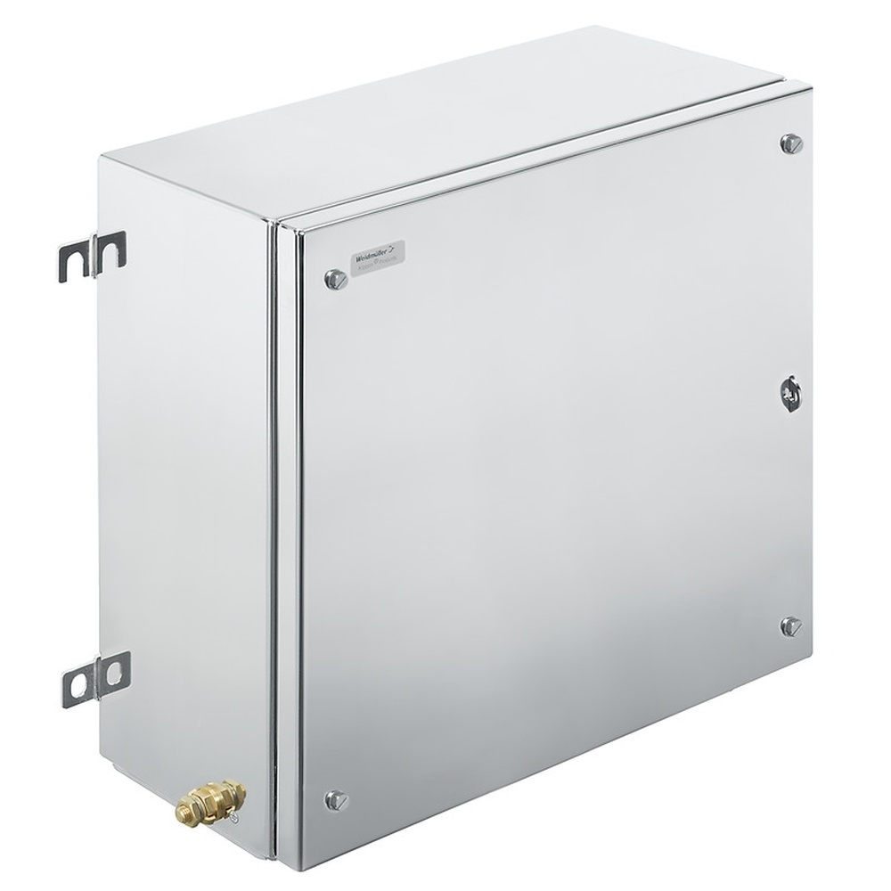 Weidmüller Metallgehäuse 8000108845 Typ KTB MH 404020 S4E3 Metallgehäuse, Breite: 406 mm, Höhe: 406 mm, Tiefe: 200 mm, elektropoliert, Flanschplatte: Ja, unten, links, rechts, 4 Scharniere und M6 Sechskantschl Gehäuse aus Metall für den Einsatz in industriellen Anwendungen. Die Montagebohrungen befinden sich außerhalb des Dichtigkeitsbereichs. Eine Wandmontage kann durch Befestigungslöcher oder mit Montagefüßen realisiert werden. Hersteller Weidmüller Nr. 8000108845 Typ KTB MH 404020 S4E3 EAN Nr. 4099986661561 Warengruppe Weidmüller Gehäuse