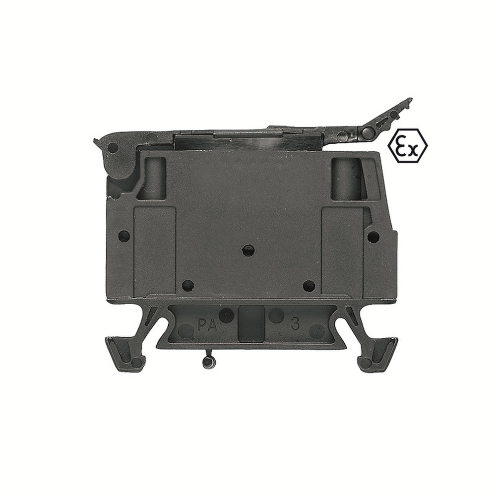 Weidmüller Sicherungs Reihenklemme 2564350000 Typ WSI 4/LD 10-36V AC/DC Sicherungs-Reihenklemme, Schraubanschluss, schwarz, 4 mm², 6.3 A, 36 V, Anzahl Anschlüsse: 2, Anzahl der Etagen: 1, TS 35 Reihenklemme zum Anschließen oder Verbinden von Leitern mit dauerhaft sicherem Kontakt. Gehärteter Stahl hält den mechanischen Kräften stand, Zinn-beschichtetes Kupfer sorgt für beste Leitfähigkeit. Mit herausnehmbarem Träger für einen Sicherungseinsatz. Hersteller Weidmüller Nr. 2564350000 Typ WSI 4/LD 10-36V AC/DC EAN Nr. 4032248492077 Warengruppe Weidmüller Reihenklemmen